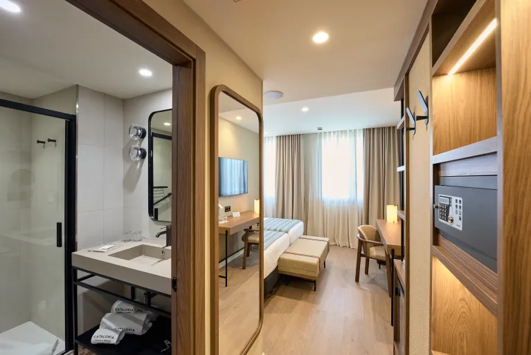 Les habitacions del hotel Catalonia Barcelona Beach ofereixen un disseny minimalista amb terra de parquet, mobiliari de fusta i estan totalment equipades. Si vols gaudir d'una estada incomparable, tria una de les nostres habitacions superiors amb balcó. O si necessites un extra d'espai per viatjar amb la família o els amics, queda’t en una de les júnior suites familiars, amb dos banys, dormitori i saló independent amb sofà llit.