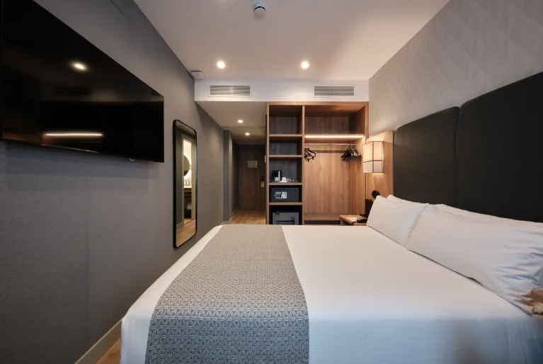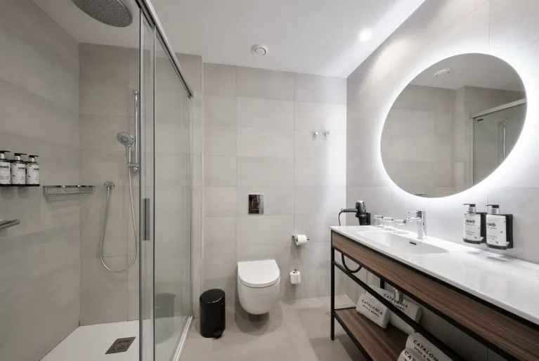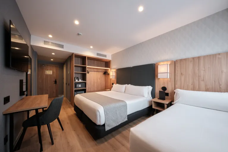 Construït el 2004, l'hotel Catalonia La Maquinista compta amb à mplies i lluminoses habitacions, totes decorades amb fusta i tons cà lids i equipades amb Chromecast perquè puguis veure els teus continguts preferits durant la teva estada. Tria una de les nostres habitacions premium, recentment reformades amb un toc actual i amb dutxa efecte pluja al bany perquè et relaxis després del teu dia a la ciutat.