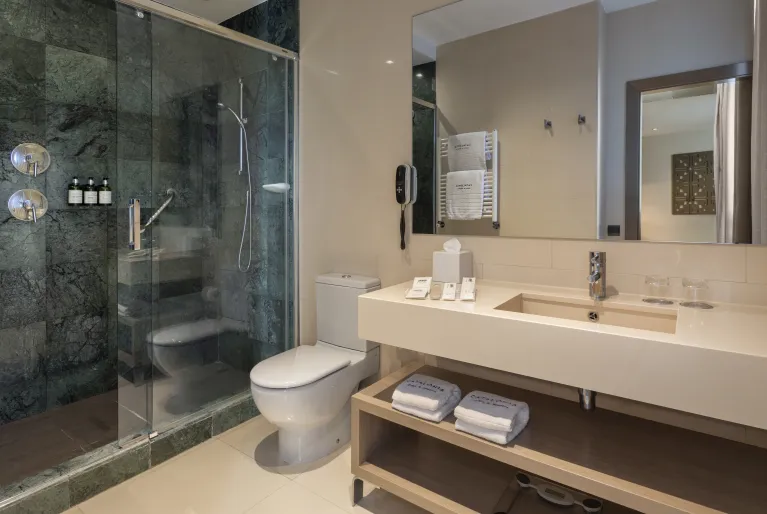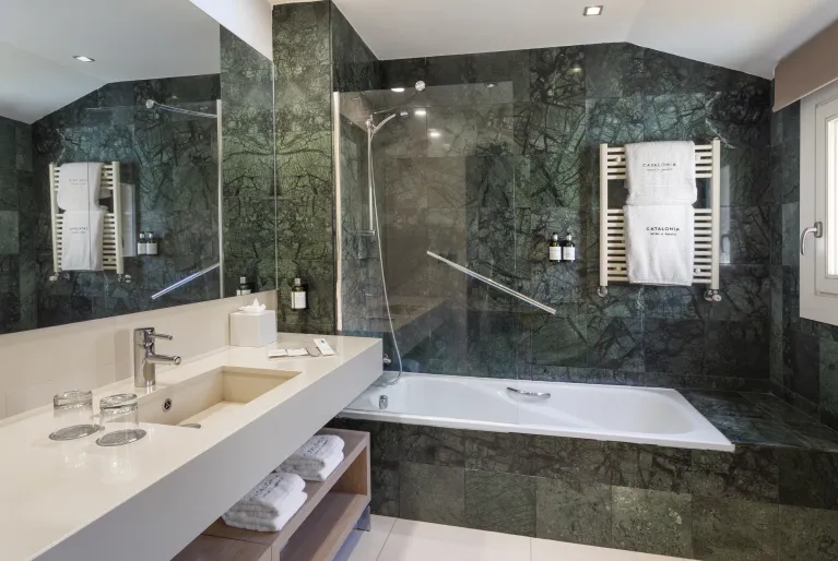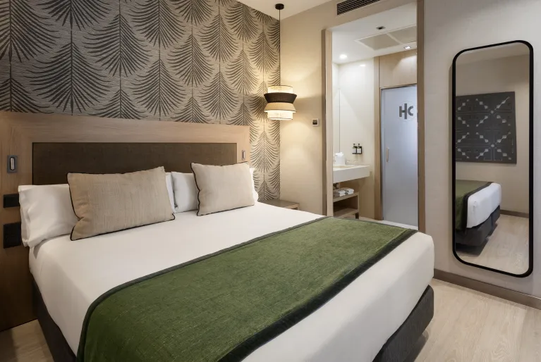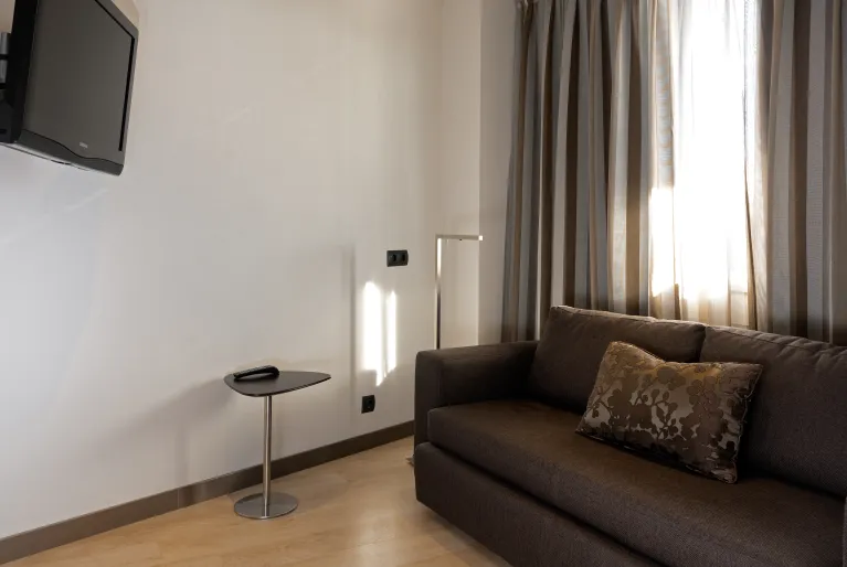 Wenn Sie die Schwelle des Hotels überschreiten, werden Sie vom Inneren durch den Kontrast zum Äußeren überrascht sein, denn von der Lobby aus werden Sie eine avantgardistische Dekoration mit minimalistischen Details und einem sehr sorgfältigen Design sehen. Neben der neuesten Technologie, die in der Hotelbranche zum Einsatz kommt: Beleuchtung mit LED-Leuchten, integrierte intelligente Klimaanlage oder Climalit-Schlösser, die Kataloniens Engagement für eine nachhaltige und umweltbewusstere Zukunft zeigen.