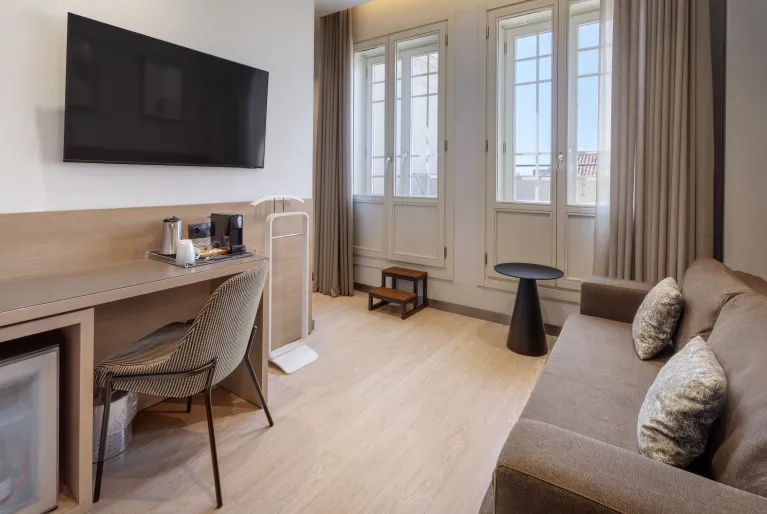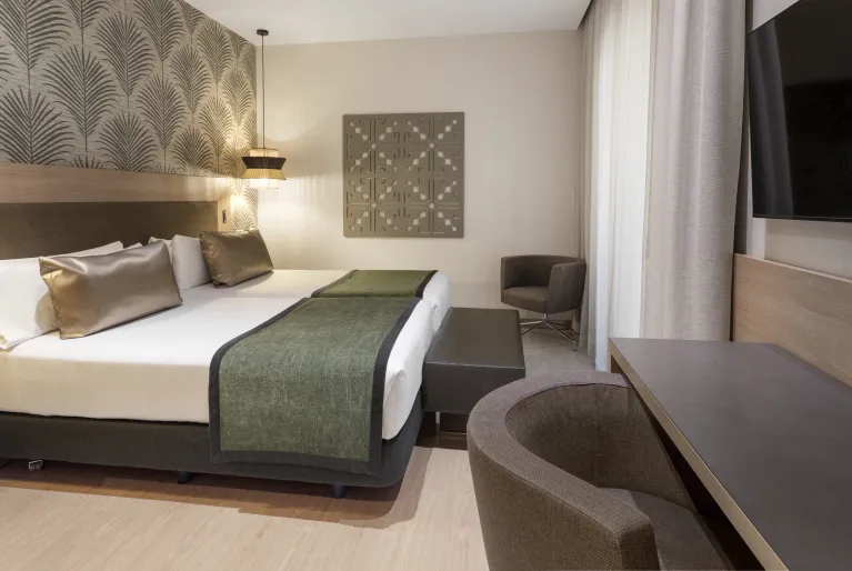 Die mehr als 170 Zimmer im Catalonia Atocha Hotel sind in einem modernen Stil gestaltet und mit einem Fernseher mit Chromecast ausgestattet, damit Sie Ihre Lieblingsinhalte ansehen können. Wählen Sie eines der Zimmer mit Terrasse oder Superior-Terrasse, um einen Außenbereich zu haben, in dem Sie nach einem Tag mit Blick auf die Stadt entspannen können oder die neue Junior Suite mit Pool zum Abkühlen, wann immer Sie möchten. Wenn Sie sich jedoch einen wirklich unvergleichlichen Aufenthalt wünschen, buchen Sie unsere prächtige Junior Suite, die an den Wänden und Decken Fresken und Originalverzierungen aus dem frühen 20. Jahrhundert sowie einen fabelhaften Parkettboden aus fein geschnitzten Stücken aufweist.