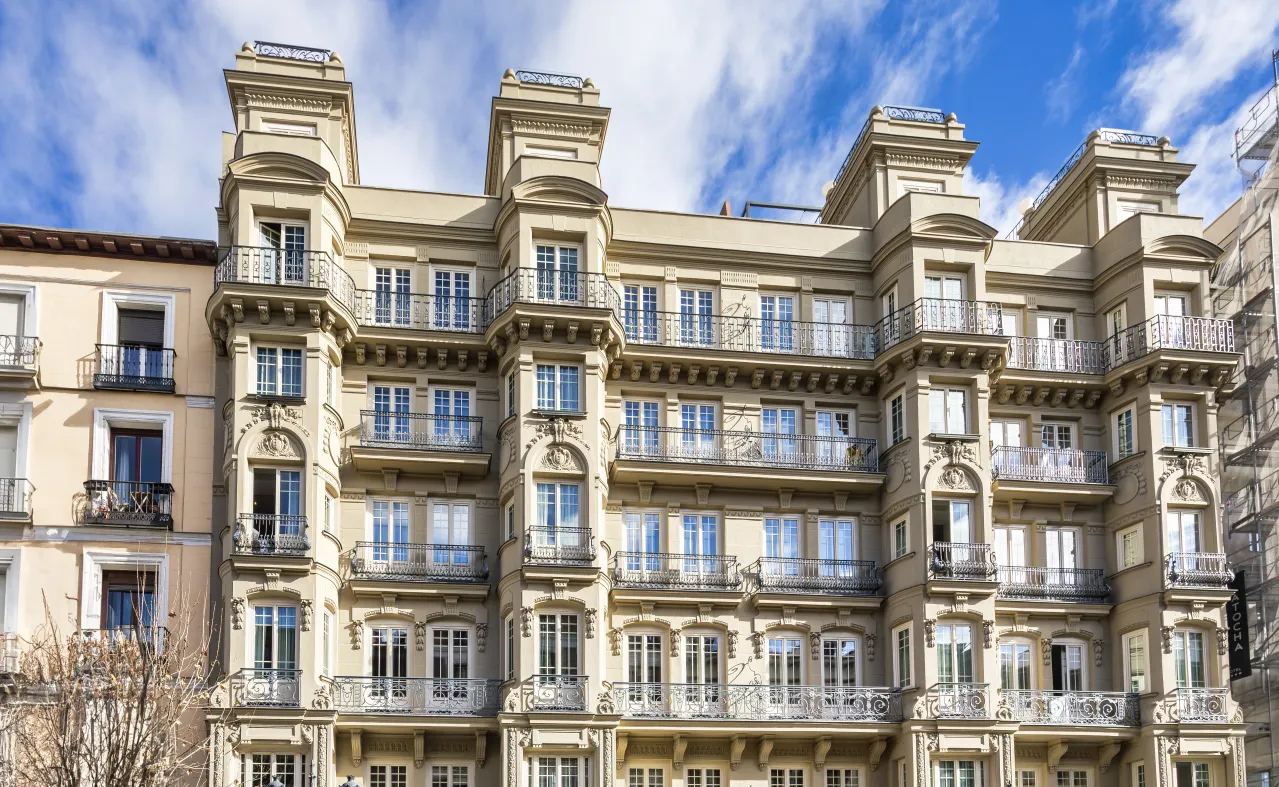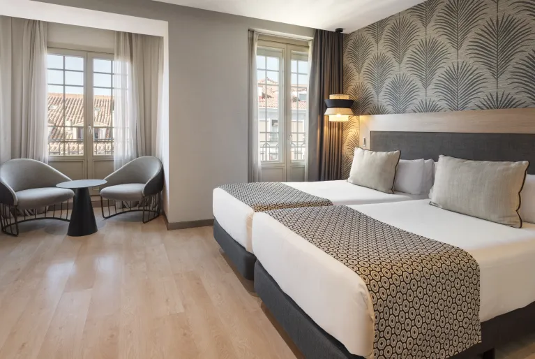 Die Fassade des Hotels fängt alle Blicke der Fußgänger ein, die durch die Atocha-Straße gehen. Es ist im neoklassizistischen Stil gehalten und zeichnet sich durch seine Balkone aus, die mit einer Vielzahl von Stuck- und Schmiedearbeiten verziert sind. Es handelt sich um ein Originalgebäude aus dem frühen 20. Jahrhundert und ist Teil des historischen Komplexes Villa de Madrid. Es befindet sich in der von König Felipe IV. angeordneten Erweiterung, bei der die Zäune, die die Grenzen der Hauptstadt markierten, abgerissen wurden, damit die Stadt weiter wachsen konnte.