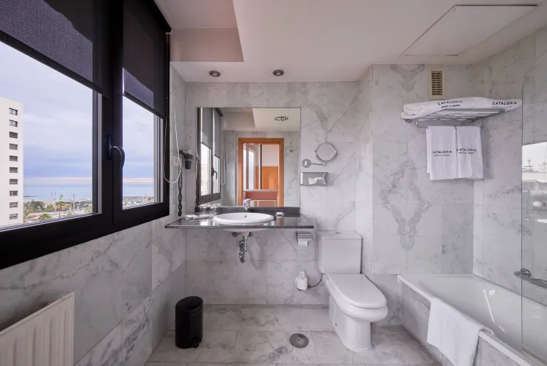The rooms in the Catalonia Barcelona Beach hotel have a minimalist design with parquet flooring, wooden furniture and are fully equipped. If you want to enjoy a stay in incomparable surroundings, choose one of our superior rooms with a balcony. Otherwise, if you need extra space to travel with your family or friends, stay in one of the family junior suites, which have two bathrooms, a bedroom and separate living room with a sofa bed.