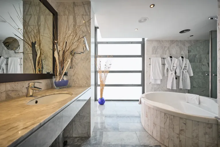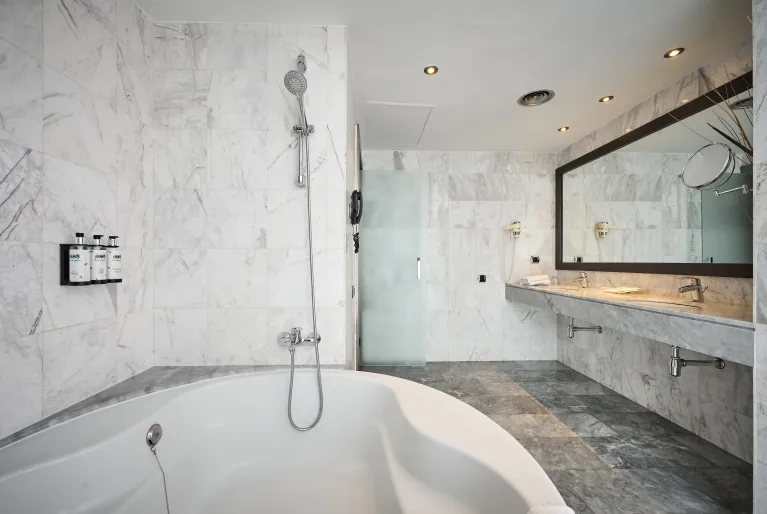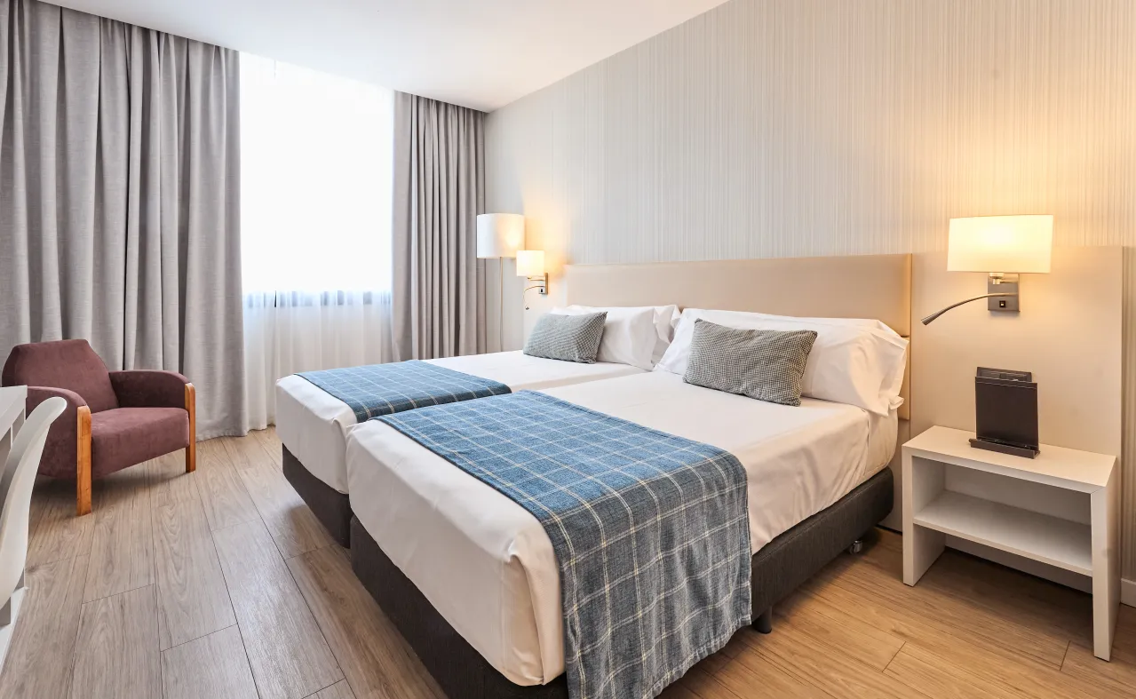 The rooms of the Catalonia Gran Hotel Verdi are stylishly decorated in elegant brown and beige tones combined with parquet floors. If you want to enjoy a truly exclusive stay, stay in our suite, the most spacious in the hotel with a separate bedroom and living room with television in each room, as well as a dressing room. A perfect room for couples, since its large bathroom has a round bathtub with capacity for two people.
