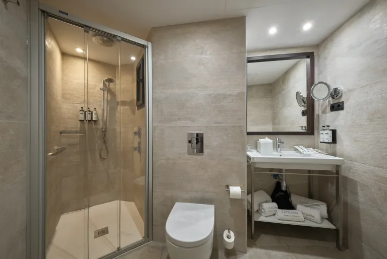 If you stay at the Catalonia Park Güell hotel you can choose between different types of rooms, all of them equipped to guarantee the most comfortable stay possible. If you want to enjoy a furnished terrace, opt for the terrace or the premium terrace, ideal for relaxing after a day of visiting Barcelona. If you are traveling with friends or family, then we recommend the quadruple or family rooms, with beds and plenty of space for everyone. Some of the rooms overlook the interior patio, whose walls are inspired by the trencadissa technique that Gaudí used in many of his projects, including the famous salamander in Park Güell.