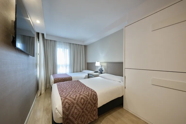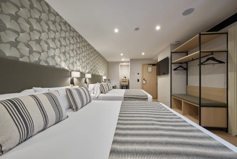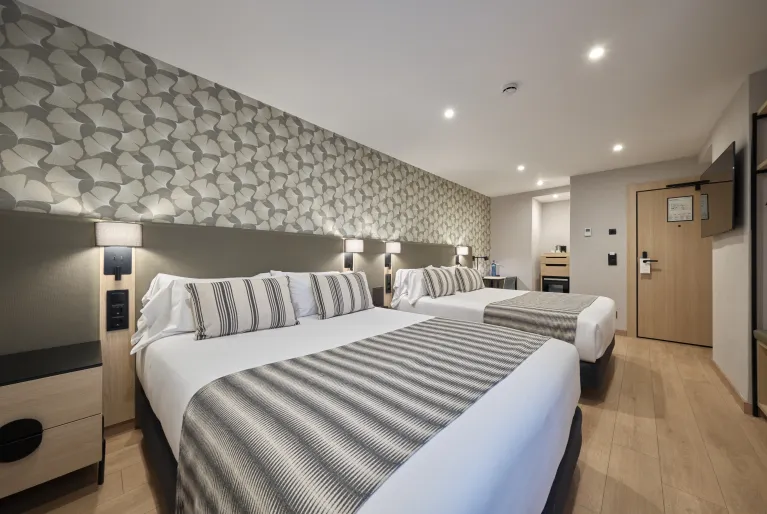 Whoever you come with, go up to the rooftop to enjoy the views over the city and also our urban pool where you can cool off on the hottest days. In addition, the pool is surrounded by sun loungers in the solarium area where you can tan while surfing the internet thanks to the free Wi-Fi available in all hotel facilities.