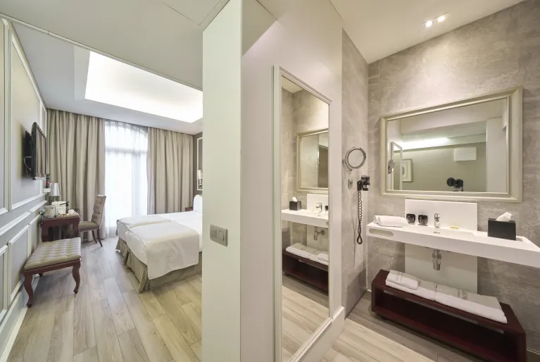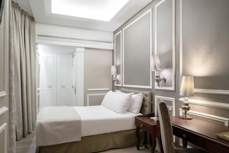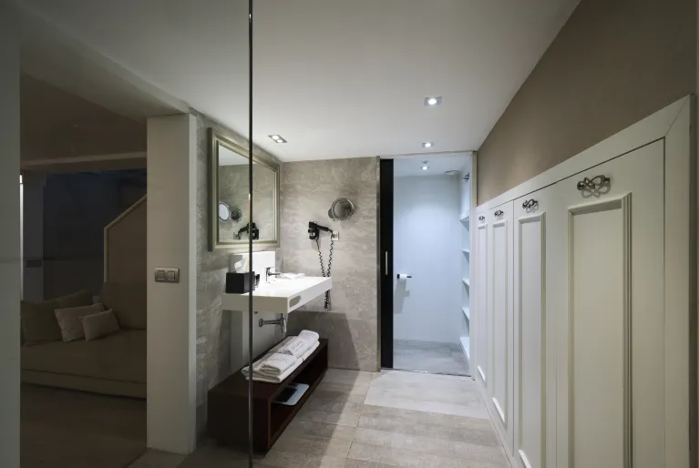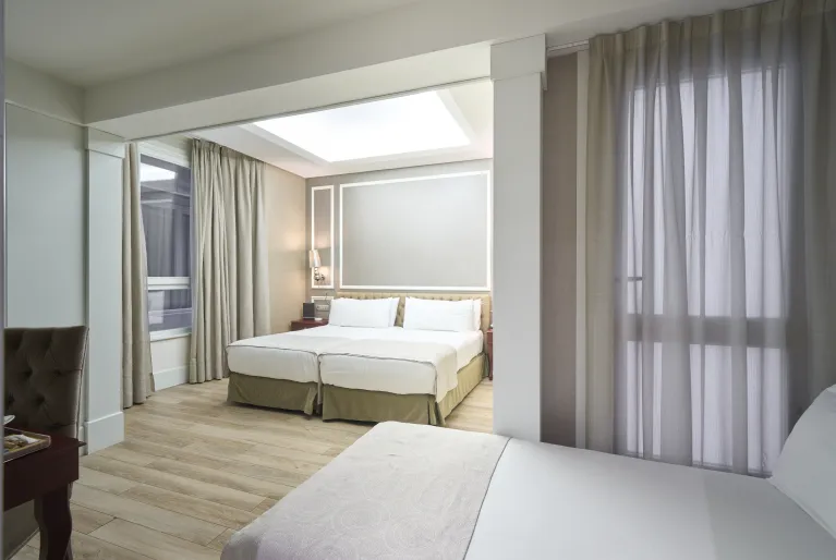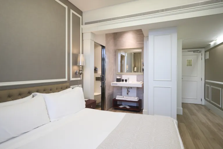 The façade preserves some of the characteristic elements of modernist architecture, such as the wrought iron railings and the large central balcony on the first floor, closed with large windows. The latter belongs to the spectacular junior suite room, which has great light and a spacious bedroom with a king-size bed. Among the other 74 rooms in the hotel, the duplex suite, with two floors and a private terrace, and the terrace suite, with its own terrace and pool, are also noteworthy. In both you can enjoy the Barcelona sun!