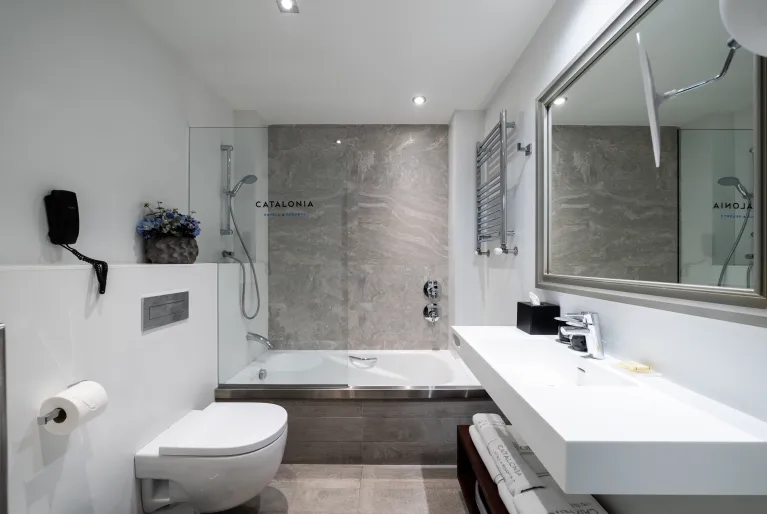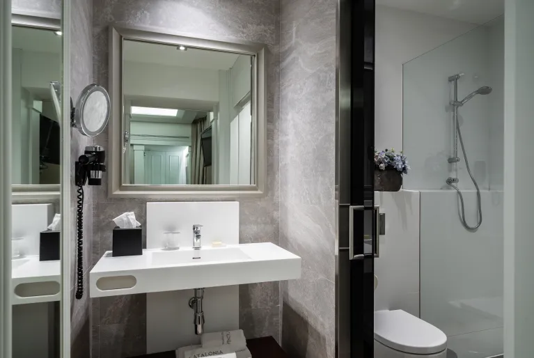 Discover the quiet interior terrace of the hotel, which has a swimming pool and solarium. Escape the bustle of the city for a moment with a refreshing swim and then lie in the sun in our hammocks. If you want to keep fit during your stay, we have a gym with state-of-the-art machines. In addition, at the Catalonia Passeig de Gràcia hotel we have our own car park in the same building with spaces for recharging electric vehicles (check rates with reception via email or phone).