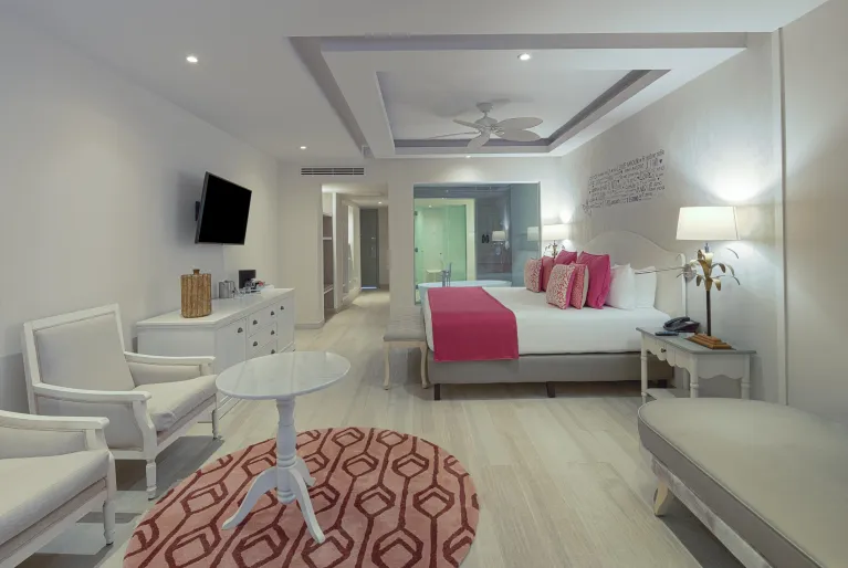 Our Privileged guests enjoy the benefits of the All-Inclusive service, and in addition to these exclusive advantages described in the Privileged All-Inclusive Pack: 24-hour Room Service, Privileged Identification, 10% discount on all services and treatments in our Alegría Spa (with prior reservation), 60 minutes of free access to wet areas (once per stay, prior reservation required), Beach towel service in the room, Turndown service, Breakfast, lunch and dinner at the exclusive BLoved à la carte restaurant, Exclusive Privileged area on the beach, with snack and beverage service, 10% discount on romantic dinners, 10% discount in shops and boutiques located within the resort, 10% discount on all extra services, Early check-in and Late check-out according to availability.