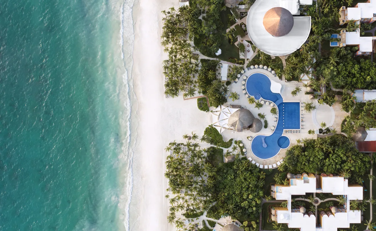 The hotel is located on Playa Maroma itself, considered one of the most beautiful beaches in the world. It is characterized by its soft white sand naturally mixed with a thin layer of coral pink. Thanks to this, it does not burn too much when you step on it and will allow you to take long walks by the sea.