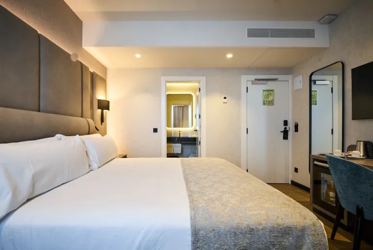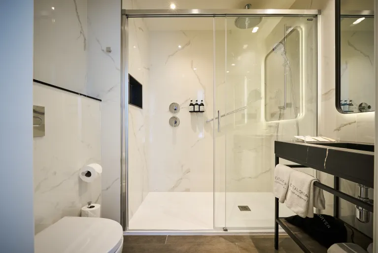 Choose one of the rooms with a balcony and views of the Portal de l'Àngel to not miss a second of what is happening on this famous pedestrian street, always full of life. If you prefer more privacy, our two-story suite located on the top floor of the hotel will give you maximum privacy along with an exclusive terrace and floor-to-ceiling windows overlooking the city.