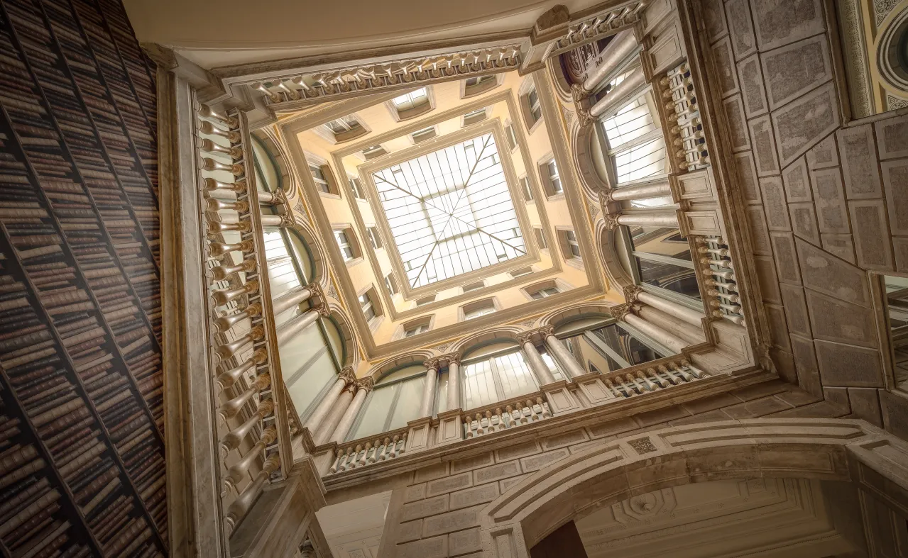 Upon entering the hotel, you will be struck by its spacious entrance, which was designed wide enough to allow carriage access in the 19th century. Through it you can access the majestic interior patio of the building, which we have restored according to the original model, and where the spectacular marble staircase typical of stately homes of the time is located.