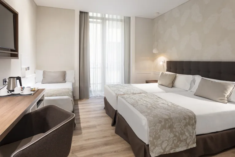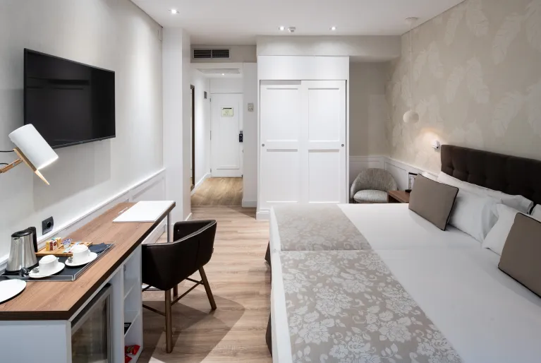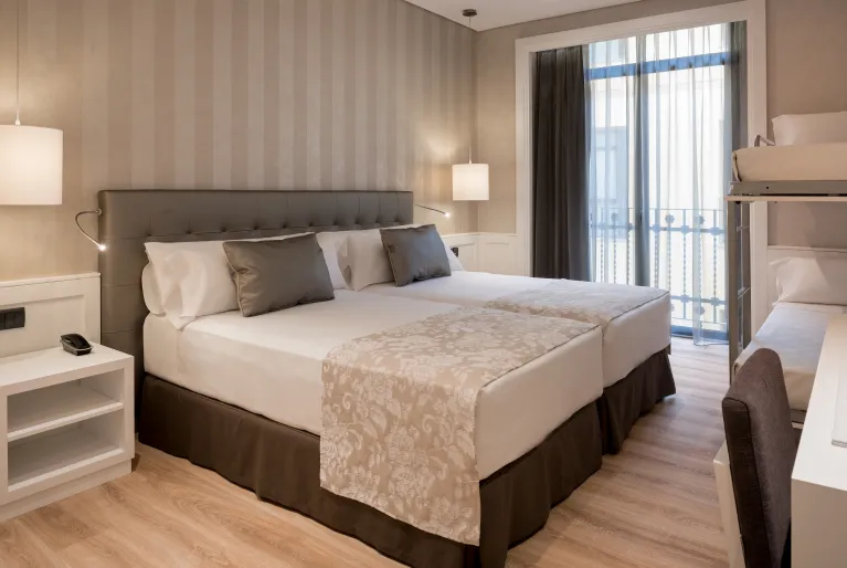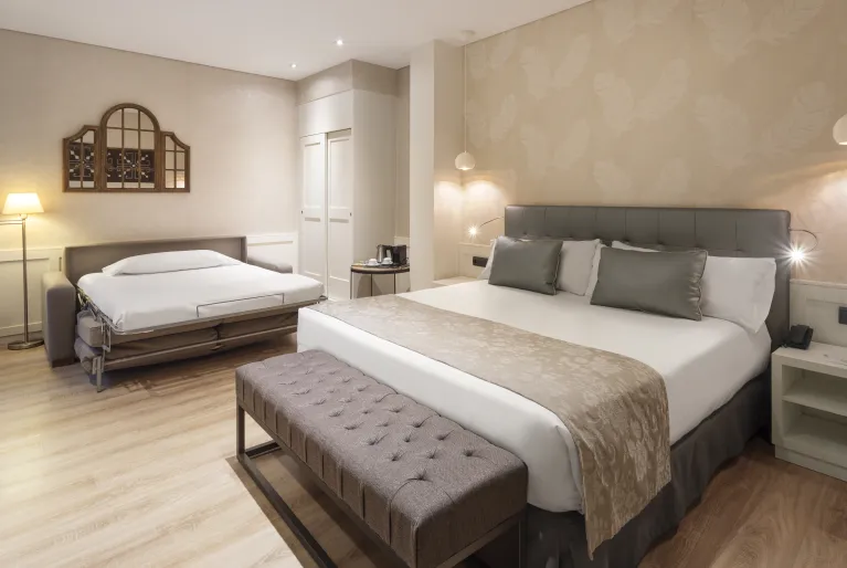 Our rooms have been renovated in a very contemporary style, including the family room, where all the gang will enjoy a full suite of amenities. Don’t miss the large breakfast buffet; we start each morning with and if you have a big event coming up you can organise it in our Salón Real , the ideal space for your business meetings.