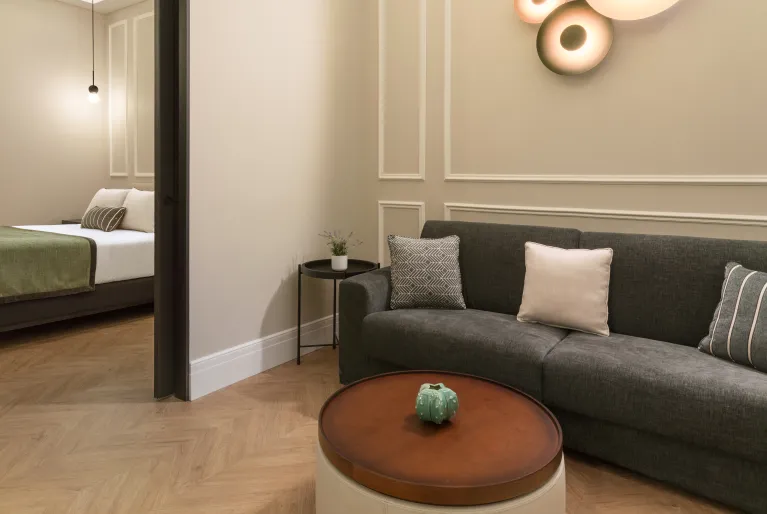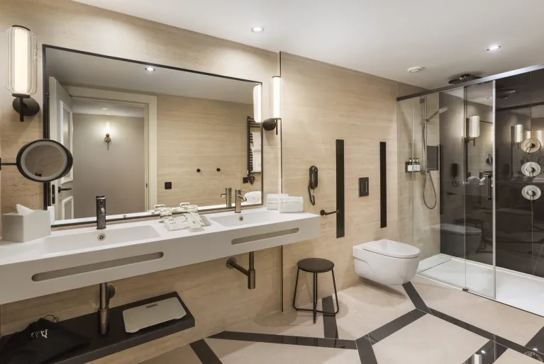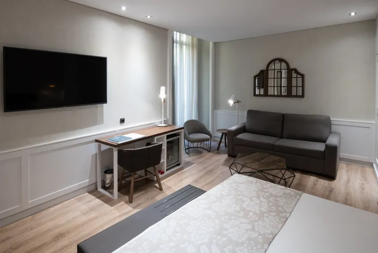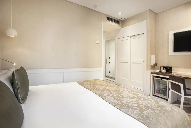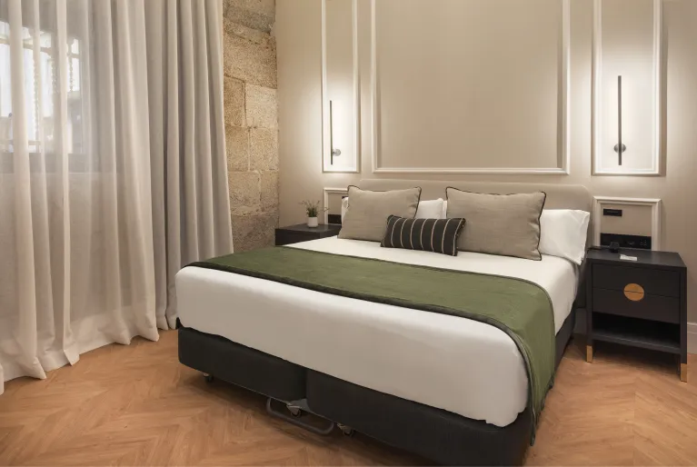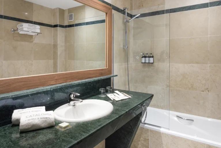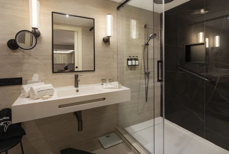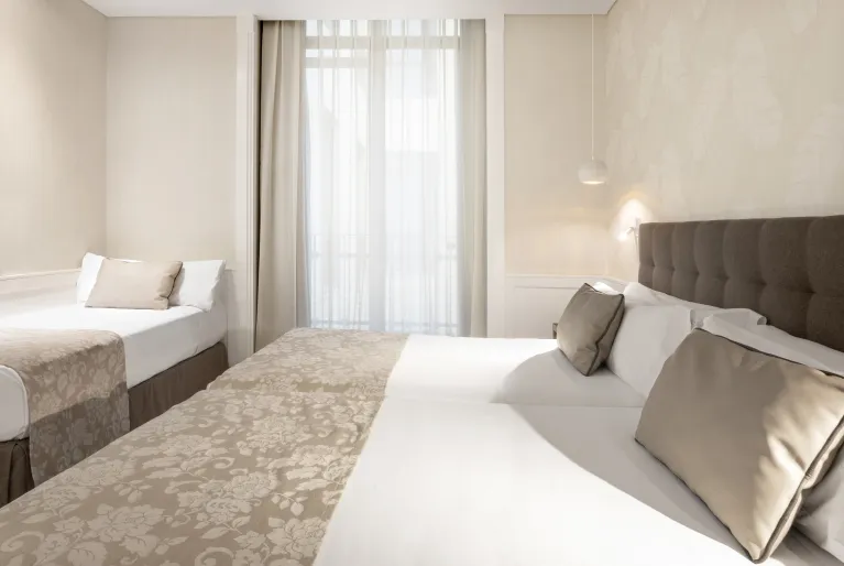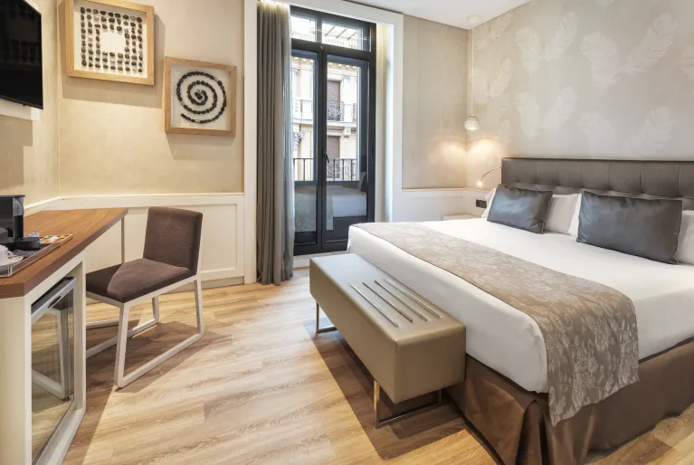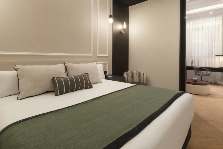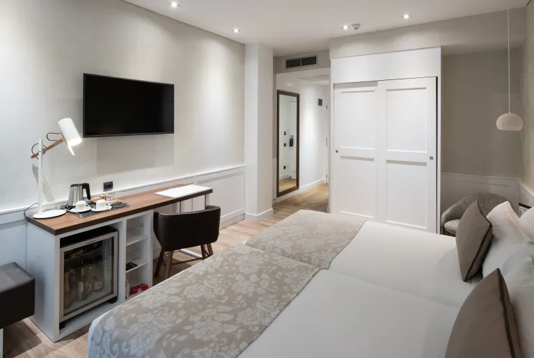 Some of our rooms overlook this exclusive patio and all are renovated with the most up-to-date design. If you like to feel the hustle and bustle of the city, choose the double rooms with views of Atocha street and, if you want to stay in complete comfort, our suite is waiting for you with a separate bedroom and living room. In addition, all our rooms are equipped with television with Chromecast so you can watch your favorite movies and series during your stay at the Catalonia Puerta del Sol hotel.