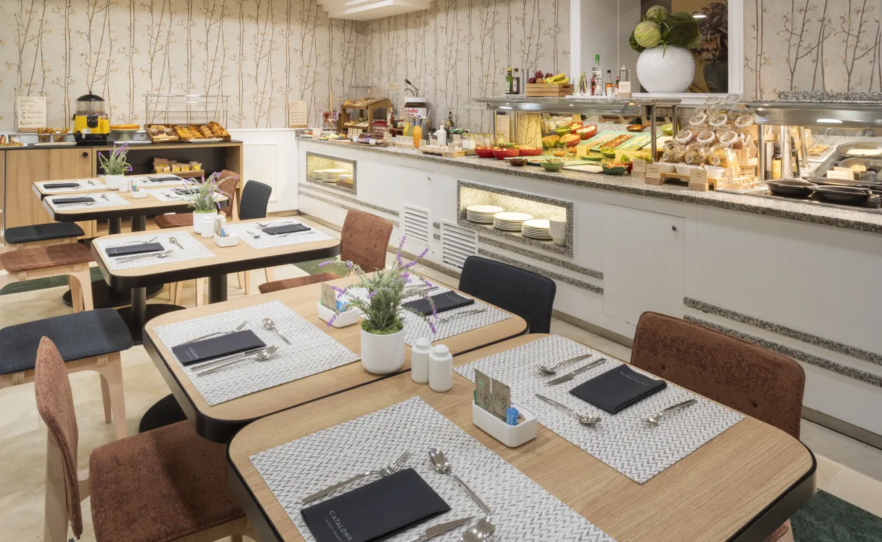 Have breakfast every day as if it were Sunday in our large buffet. Choose between hot dishes with eggs, sausages and bacon, cold meats, cheeses, sweets, yogurts, and much more. If you want a truly gourmet breakfast, a smoked salmon toast and a glass of cava will make you start the morning like never before.