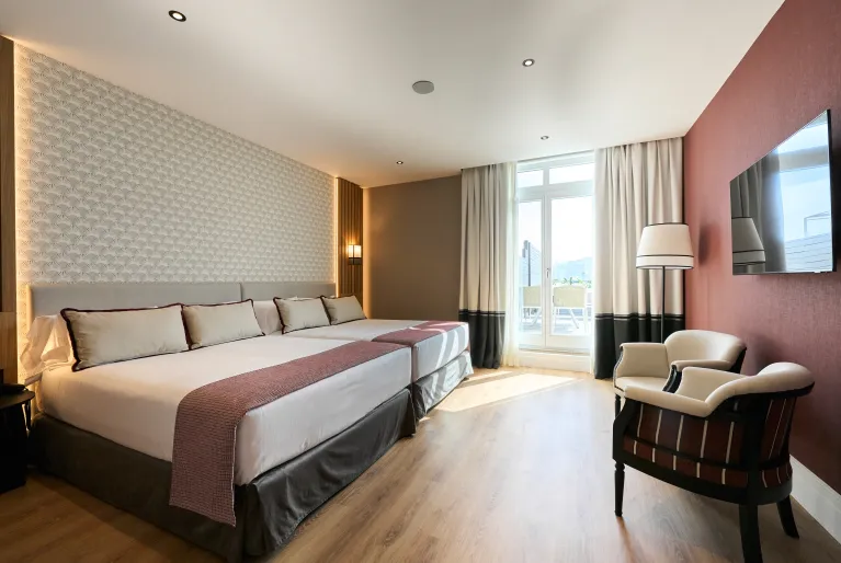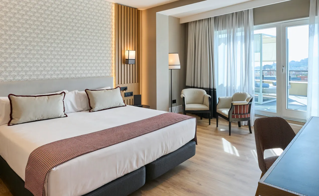 Be wowed by the gastronomic offering of the Pelai restaurant, with its old-school Catalan cuisine given a modern twist and its summer patio packed with charm. As night falls, visit the Vanguard Terrace on the hotel rooftop for the best views of Barcelona. Tap the hotel’s privileged location to organise events or celebrations in one of our 9 refurbished rooms fitted with the latest technology. We also have a wellness area in the AlegrÃa spa where you can wind down in a sauna or Turkish bath or enjoy a good massage.