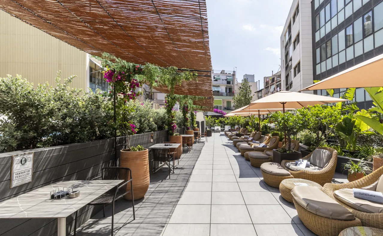 In the inner courtyard of the buildings that make up the Catalonia Ramblas hotel, a beautiful garden terrace awaits you with a swimming pool, a chill-out area and a solarium with hammocks for you to tan. You will also find the Terrassa de Pelai, ideal for lunch or dinner in a relaxed atmosphere and try its unique menu, which highlights the meat and fish dishes cooked in a josper oven.