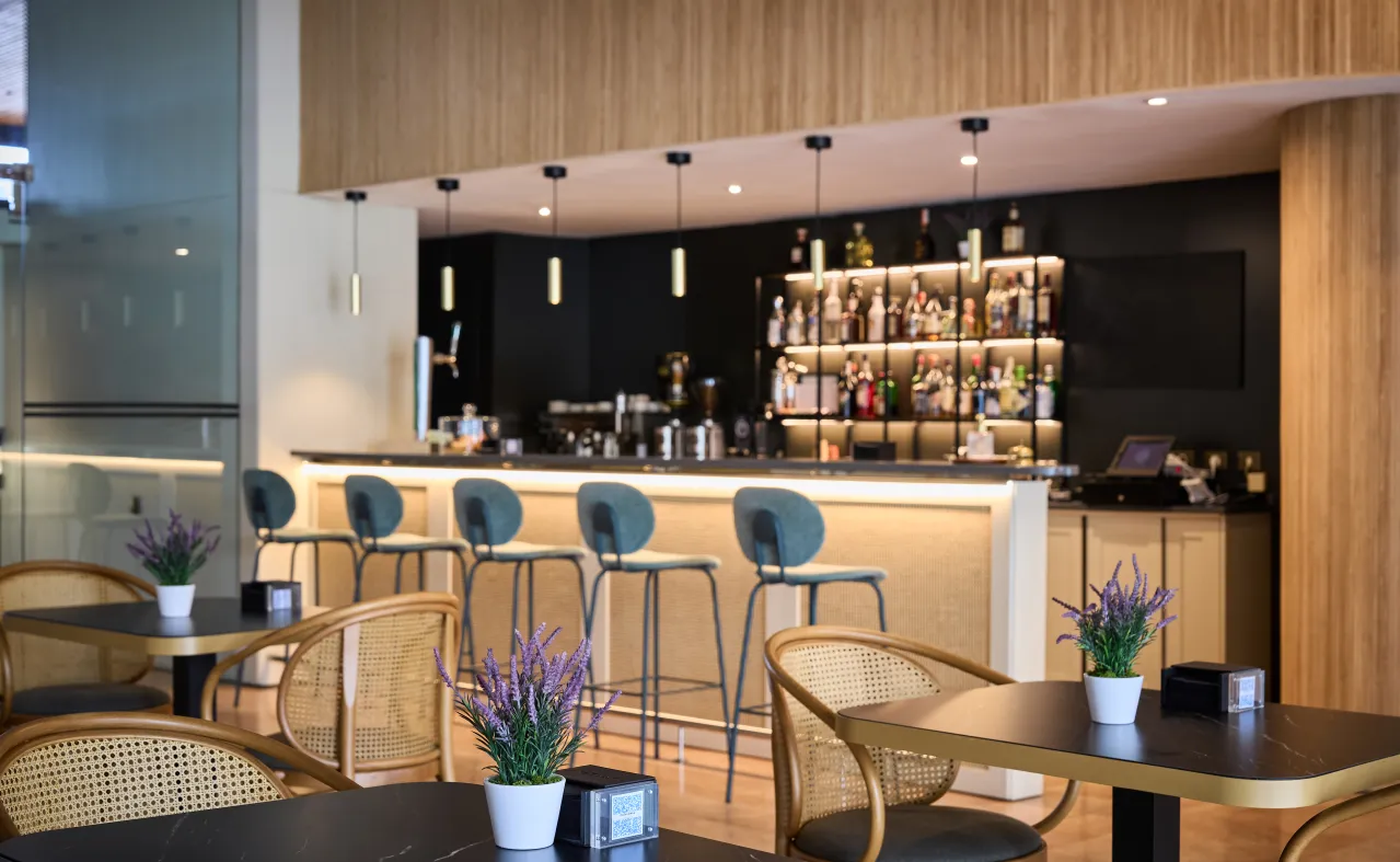 An informal space where you can eat or have a drink whenever you feel like it, without sacrificing quality and flavor. On the gastrobar menu you will find everything from snacks to dishes inspired by Mediterranean cuisine such as meat, fish, pasta and more. If you fancy a cocktail, you can have one of the classics or dare with more innovative proposals from our bartenders. In addition, the bar has a 50-inch TV with sports channels so you don't miss a thing.