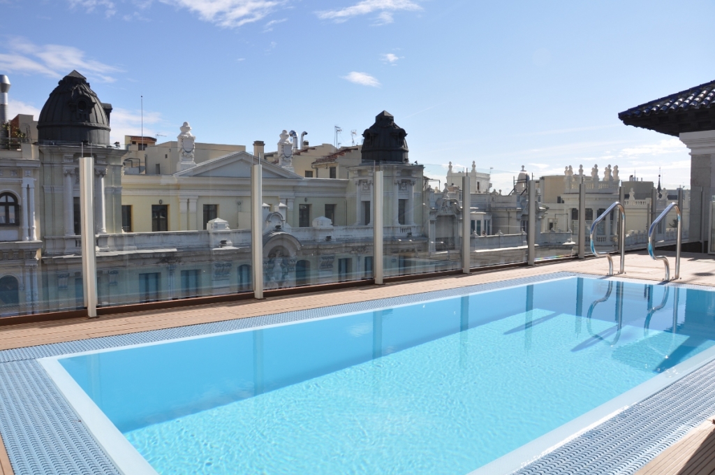 El Catalonia Gran Vía Madrid se suma así a la larga lista de céntricos hoteles de Madrid que ofrecen a sus huéspedes la posibilidad de relajarse en la piscina del hotel tras un duro día de compras, visitas culturales y turismo por la capital de España.
