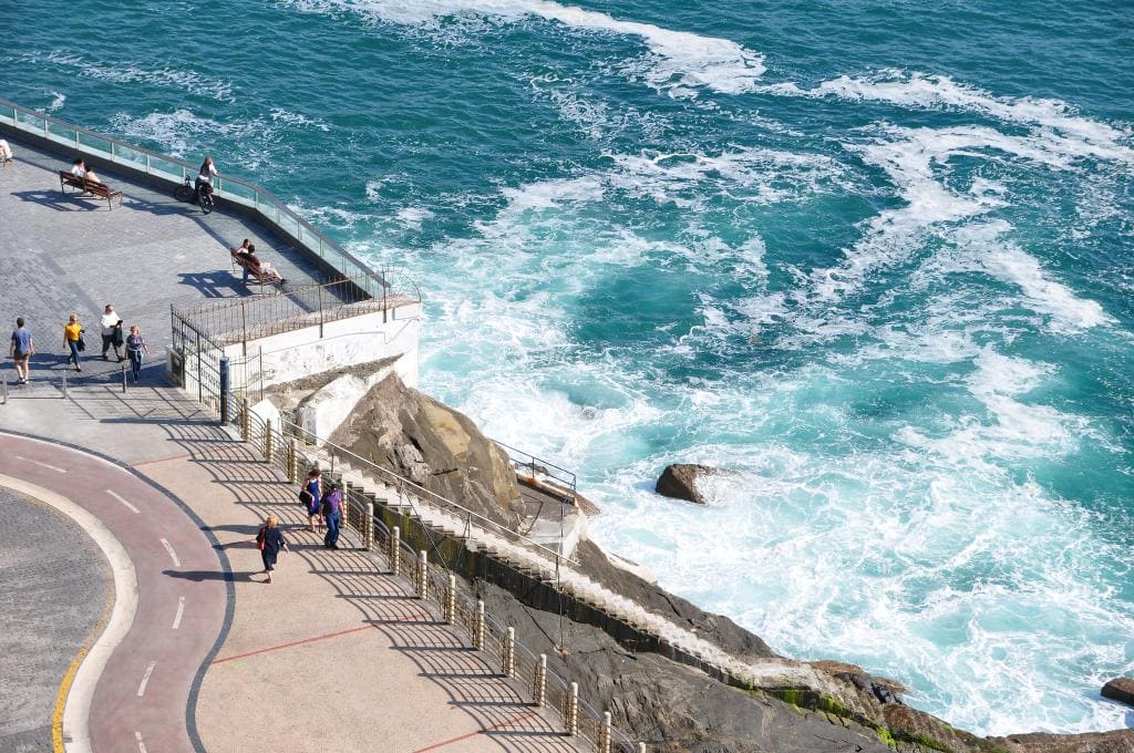 El recorrido es realmente bello, con el Cantábrico acompañándote prácticamente durante todo el itinerario. Pero claro, si tienes un mar como el Cantábrico al lado durante toda la ruta, es posible que, especialmente durante los meses de invierno, puedas acabar empapado. Seguro que has visto más de una vez en televisión las imágenes de las olas rompiendo contra las rocas y salpicando a las transeúntes en Donosti, ¿verdad? Pues es justo aquí donde se graban. Así que, si ves que es un día de temporal, te recomendamos que descartes este plan y elijas nuestra siguiente propuesta, pero si no, no te lo pierdas.