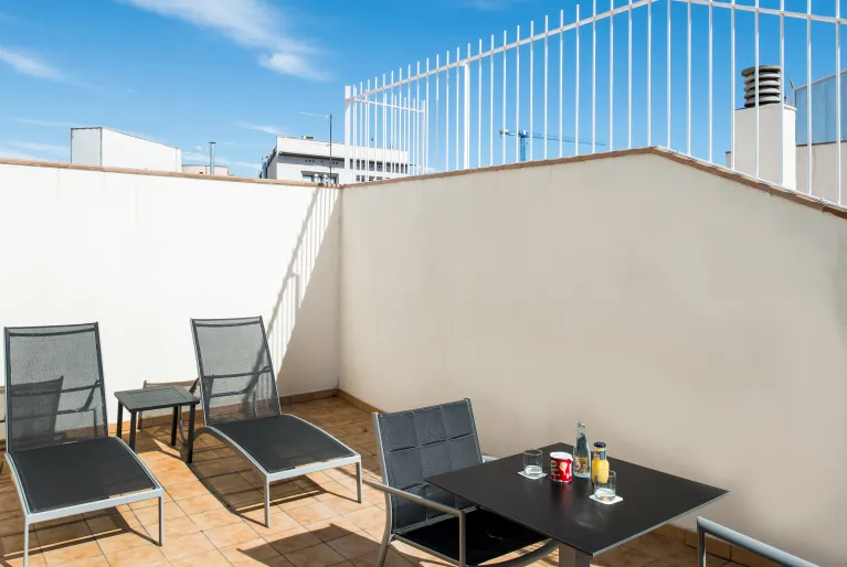 Desconecta de la forma más refrescante en la piscina de nuestro rooftop, ideal para escapar del calor. También tienes la opción de tomar el sol en las tumbonas mientras te conectas al wifi gratuito del hotel. Si eres deportista y no quieres perder tu ritmo de entrenamientos, te lo ponemos fácil en nuestro gimnasio equipado con las mejores máquinas de cardio y musculación. Además, podrás regalarte un momento de relax en el Spa Alegría, situado en otro hotel de nuestra cadena, el hotel Catalonia Ramblas (bajo disponibilidad).