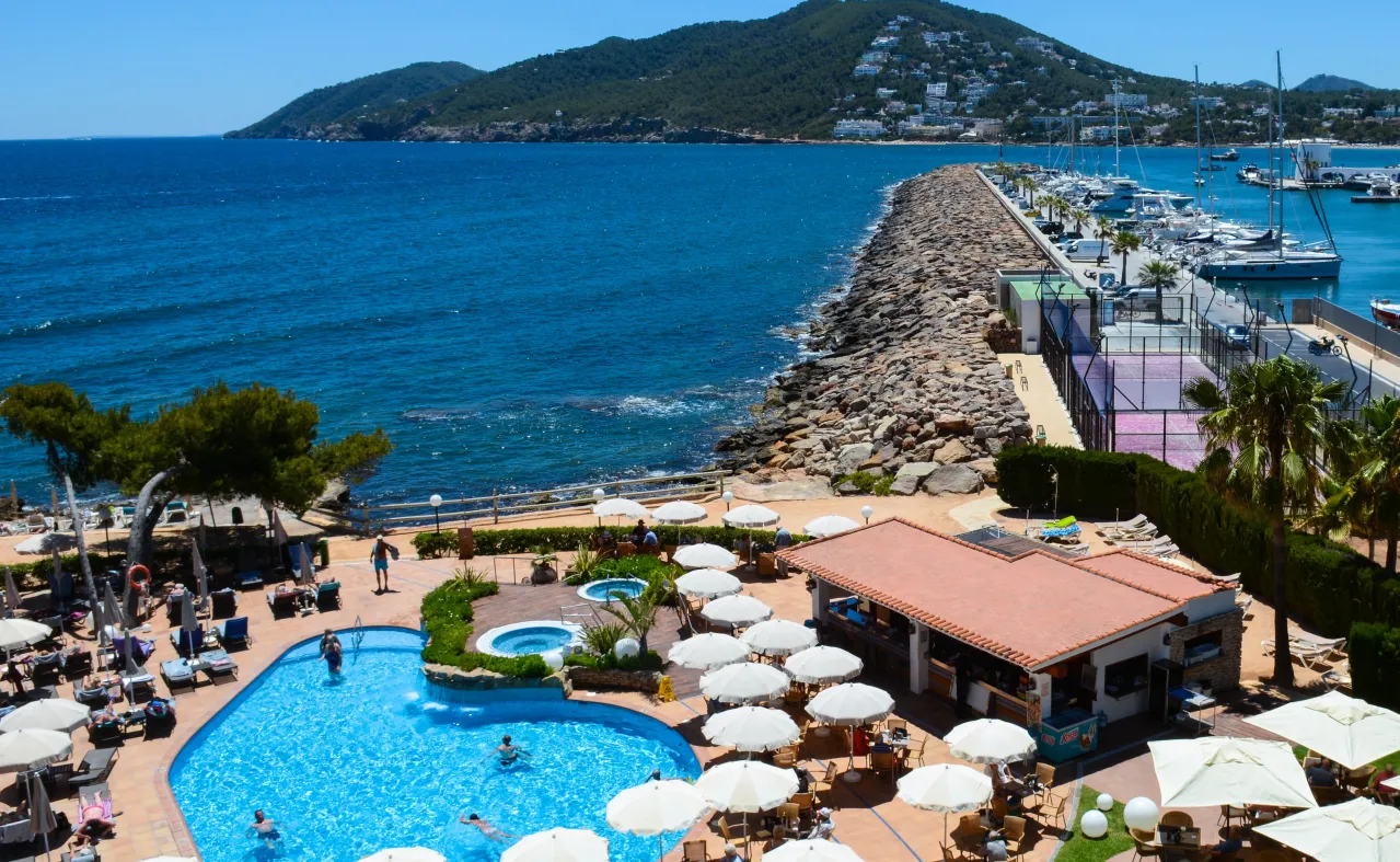 Vive tus mejores vacaciones en el hotel Catalonia Ses Estaques - Adults Only, en primera línea de playa en Ibiza. Situado en el tranquilo pueblo de Santa Eulària des Riu, es un hotel solo para adultos creado para que desconectes como nunca antes. Admira las vistas al mar desde la gran piscina, relájate en uno de los jacuzzis exteriores, toma el sol en las tumbonas o báñate en las cristalinas aguas de la cala del hotel.