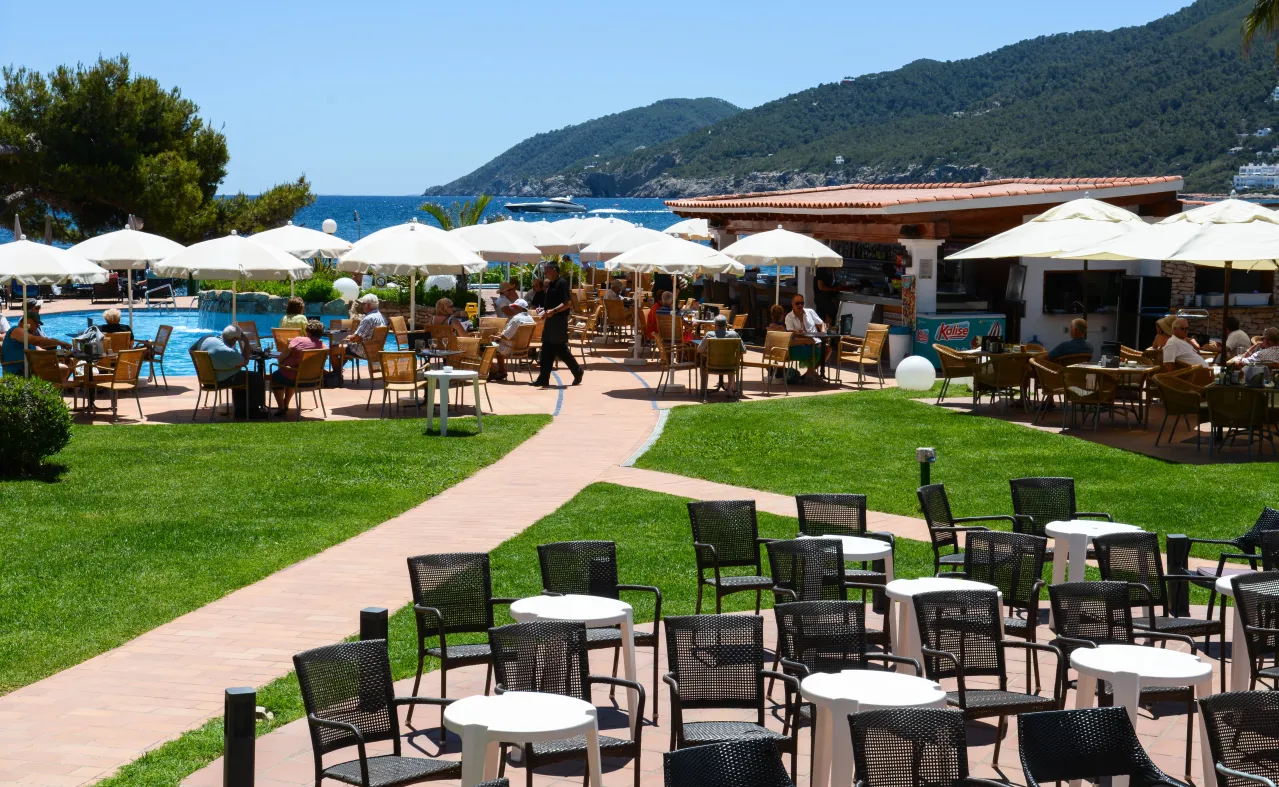 Si quieres seguir admirando las increíbles vistas al mar mientras comes, a mediodía, ven a conocer nuestro restaurante La Mar de Santa, con una carta mediterránea de proximidad creada por el chef local Vicent Ferrer. Además de arroces y pescados frescos, podrás degustar platos típicos de Ibiza, como el bullit de peix o el sorprendente bogavante con patatas fritas y huevos. Quédate en La Mar de Santa a contemplar la puesta de sol desde el bar lounge mientras disfrutas de un cóctel en la zona chill out a pie de playa. A la hora de la cena, nada mejor que escoger lo que más te apetezca en el restaurante buffet Ses Estaques, abierto cada noche con variedad de platos de cocina internacional.