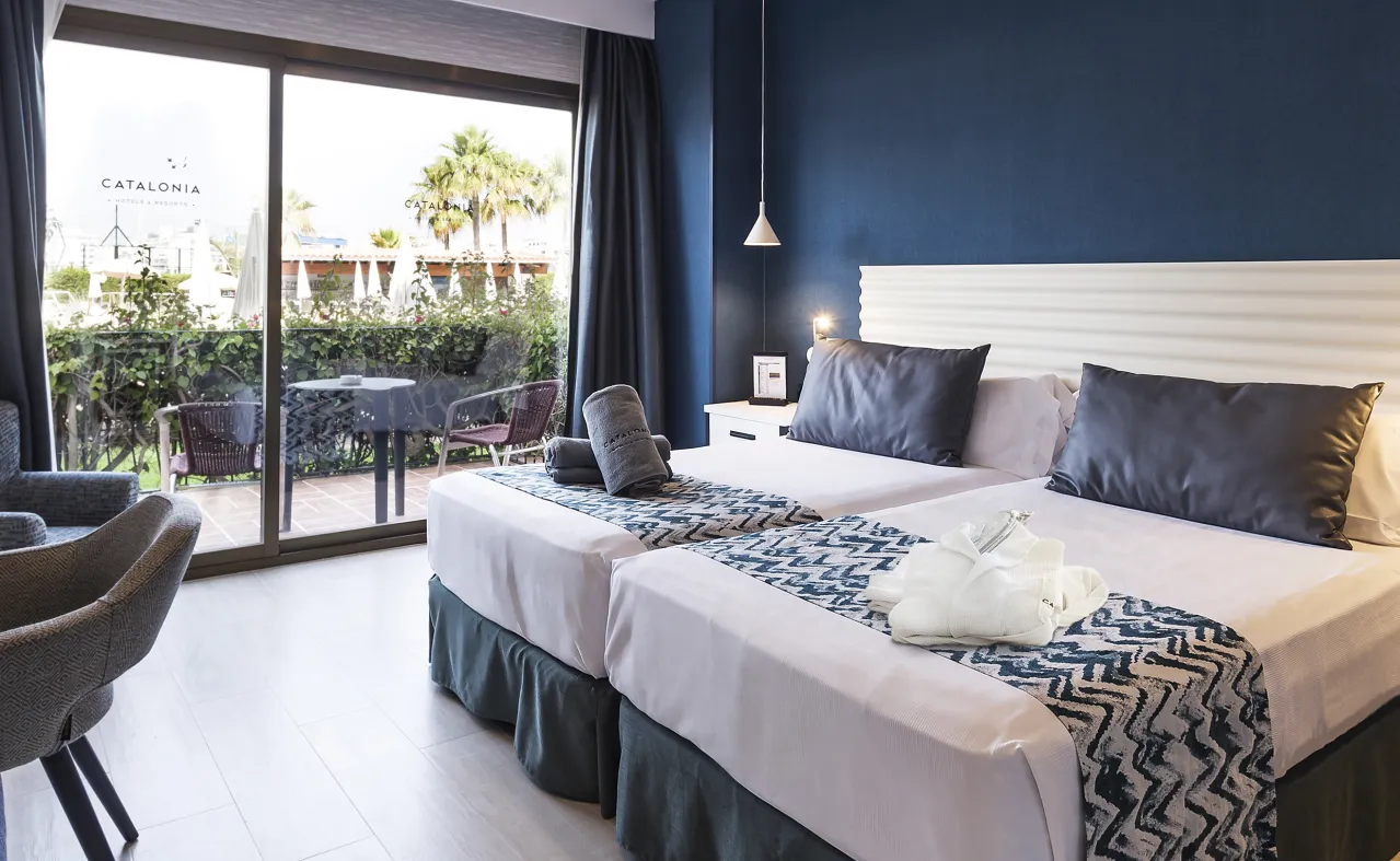 Descubre un oasis rodeado de sombrillas y palmeras en nuestro hotel, que cuenta con una magnífica piscina y dos jacuzzis exteriores para relajarte mientras contemplas un paisaje mediterráneo de ensueño. Si prefieres tumbarte al sol, junto a la piscina y a orillas de la playa encontrarás tumbonas donde broncearte. Disfruta durante el día de unas tapas, un cóctel o un refresco en el bar de la piscina mientras te conectas a wifi gratuito disponible en todas nuestras instalaciones.