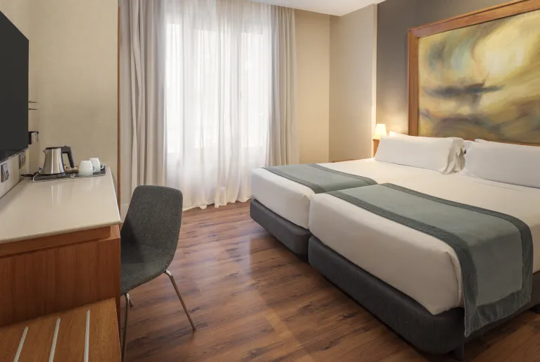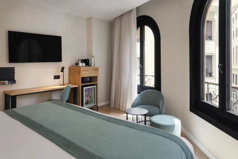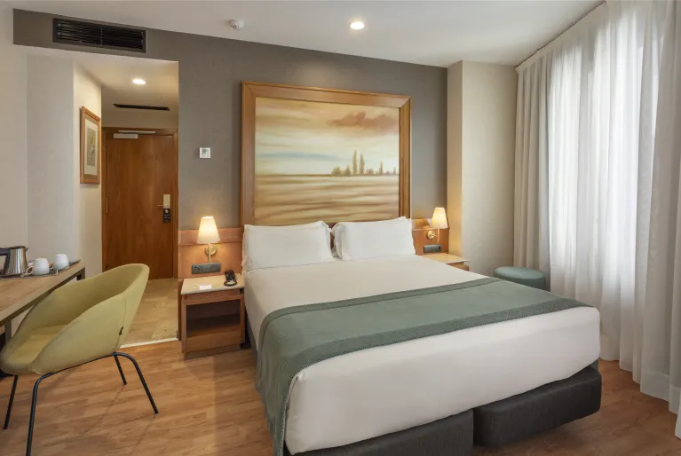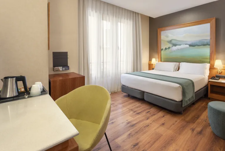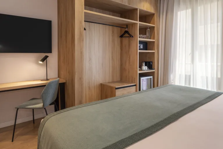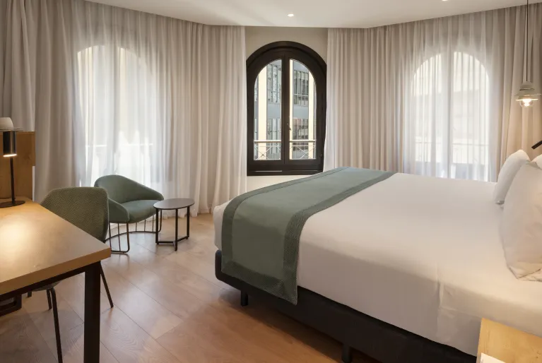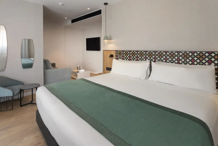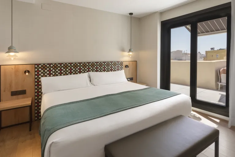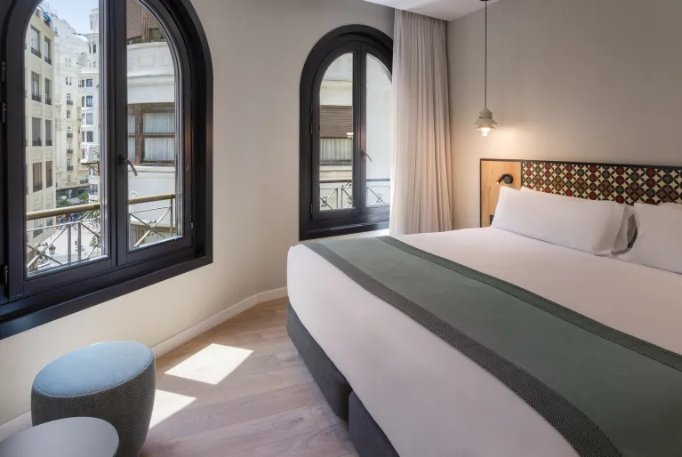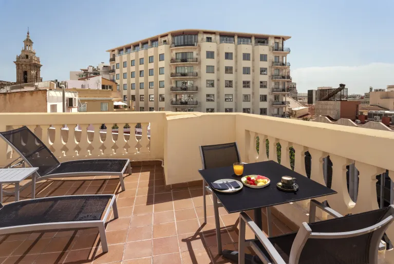 Les chambres premium, supérieures et suites ont été rénovées avec un design moderne aux lignes simples avec des finitions en bois clair et une salle de bain avec une mosaïque colorée au mur. Choisissez l'une de nos chambres avec terrasse pour profiter de la vue sur le centre historique de Valence et rafraîchissez-vous dans l'une des deux chambres avec piscine privée, la supérieure terrasse & piscine ou la junior suite terrasse & piscine.
