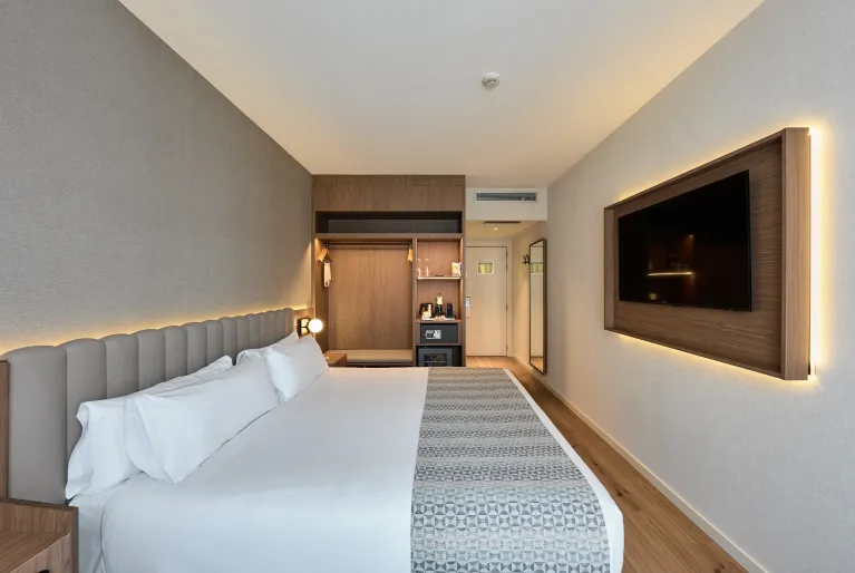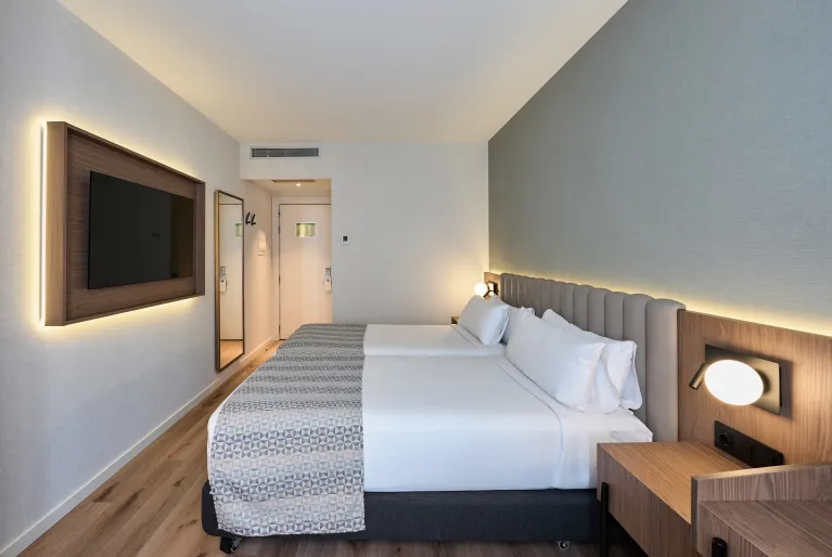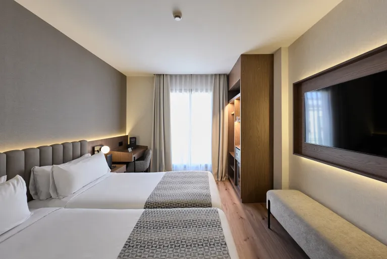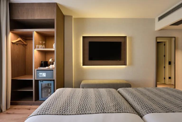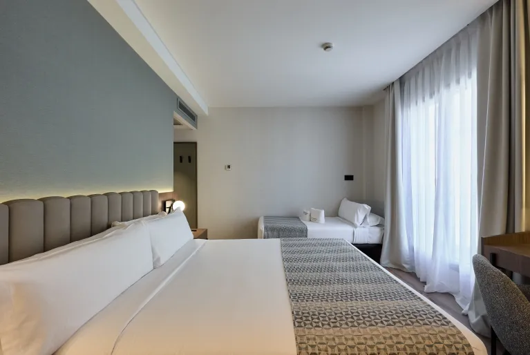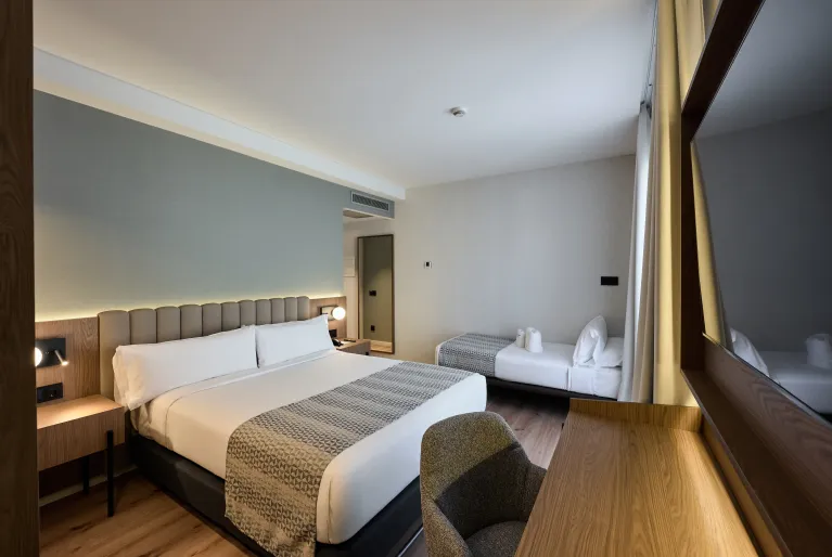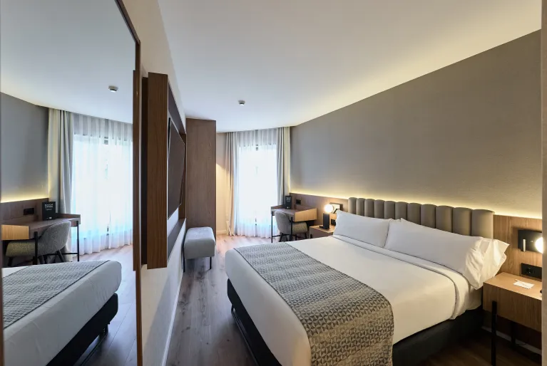 Séjour touristique, voyage d’affaires ou visite familiale, nos chambres vous procureront la tranquillité nécessaire après votre longue journée. Elles arborent toutes un design minimaliste avec parquet au sol et des décorations aux tons clairs qui transmettent une atmosphère chaleureuse et paisible. Nos chambres communicantes (sous réserve de disponibilité) sont parfaites pour les séjours en famille ; si vous voyagez avec des amis, nous disposons de chambres triples ; et si vous souhaitez encore plus de confort, choisissez l’une de nos chambres supérieures. Toutes nos chambres sont entièrement équipées et disposent d’un coffre-fort, d’un minibar et de produits d’accueil dans la salle de bains.