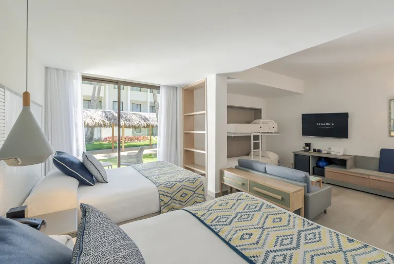 Toutes nos chambres incluent le pack tout compris du resort, avec lequel vous pourrez profiter pleinement de nos installations : piscine, plage de sable blanc, activités diurnes et nocturnes et une grande variété de restaurants pour ravir votre palais. Essayez des plats fraîchement préparés dans le show cooking de nos buffets, savourez des pizzas au feu de bois à la pizzeria Sorrento, partagez des tapas espagnoles à notre Terrace Tapas & Lounge, dégustez des plats asiatiques au restaurant Ayami ou découvrez les saveurs de la délicieuse gastronomie dominicaine.