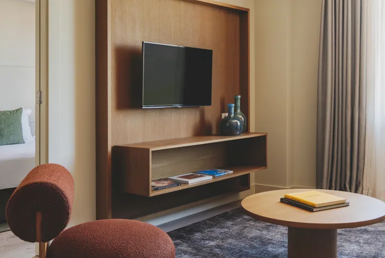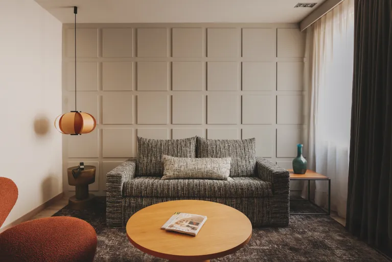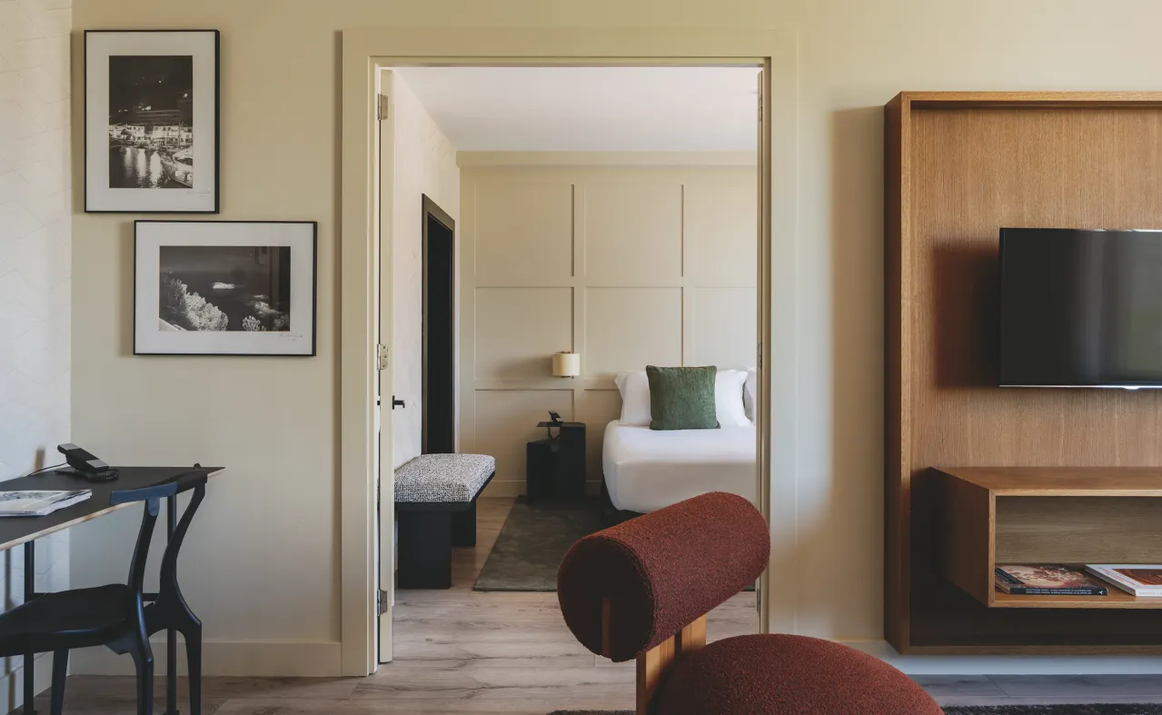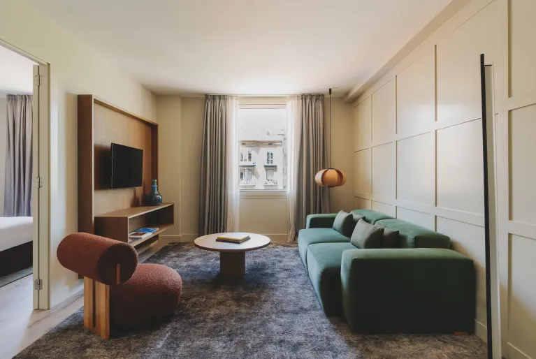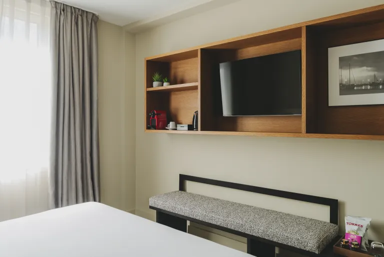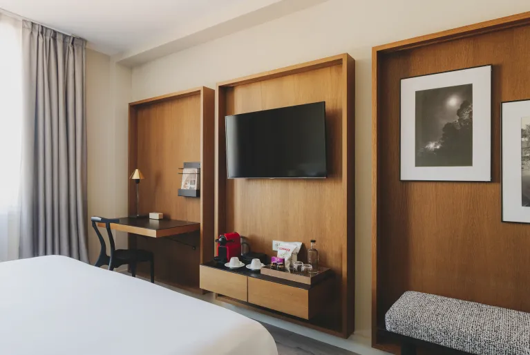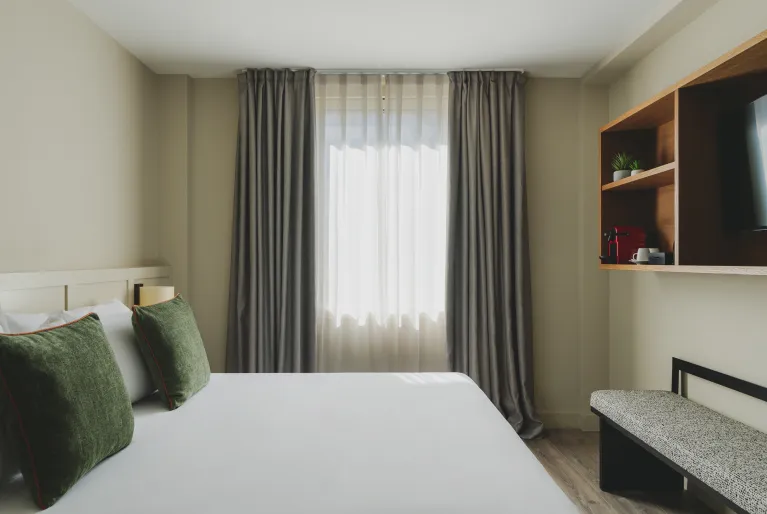 Godetevi un soggiorno perfetto in camere di design completate da servizi eccezionali: il nostro rooftop con vista, un'autentica oasi urbana con piscina, solarium e cocktail d'autore. Al piano terra, il ristorante Sintonia è un punto di riferimento gastronomico famoso per la sua bistecca alla tartara, la sua cucina locale e il suo wine bar. Abbiamo anche una palestra, una sauna, un servizio massaggi su richiesta, sale eventi per riunioni aziendali o private e un parcheggio privato nello stesso edificio.