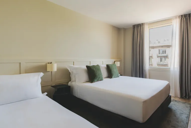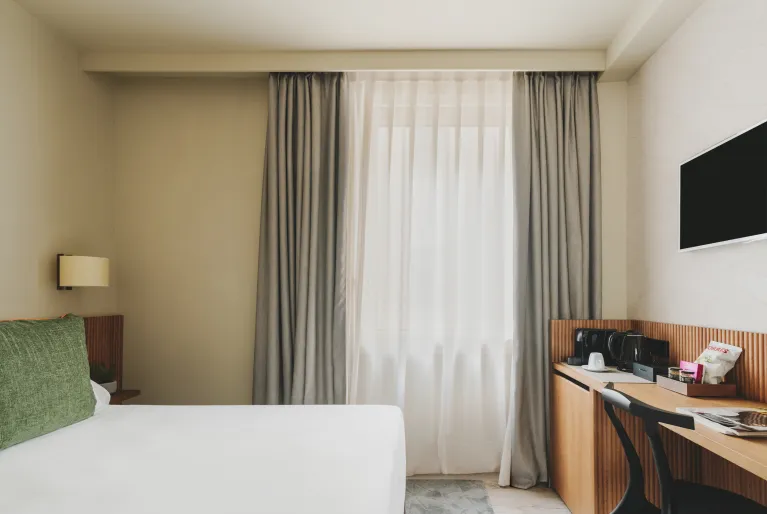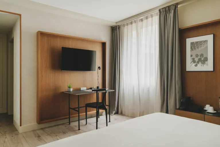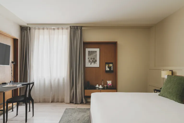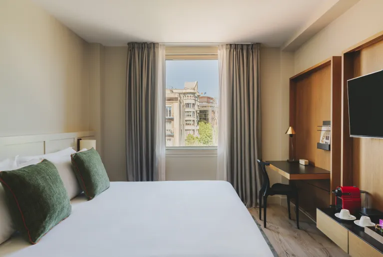 Le nostre 110 camere respirano l'essenza di Barcellona, in quanto le decorazioni e gli arredi provengono da fornitori locali che dettano le tendenze nel campo dell'interior design. Dalle camere superior alle nostre esclusive suite, tutte le camere sono state create per offrirvi un'atmosfera di pace e benessere con arredi e finiture di design in materiali di alta qualità . Immaginate di svegliarvi con la luce naturale di Barcellona in uno spazio dotato di tutti i comfort, come le macchine da caffè Nespresso, gli altoparlanti Bluetooth per riprodurre la vostra musica preferita e le finestre insonorizzate che vi isoleranno dal trambusto della città .