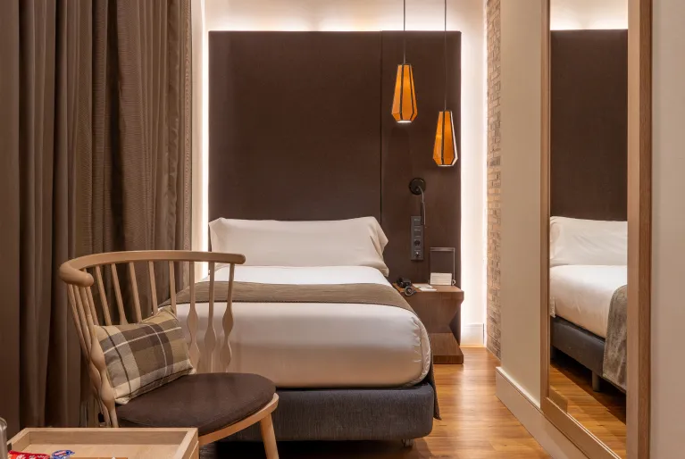 Scegli tra le oltre 180 camere dell'hotel Catalonia Gran Vía Madrid, tutte rinnovate e arredate in modo accogliente in legno e tonalità beige che invitano al relax e al relax. Alcuni si distinguono per le loro terrazze con vista sulla Gran Vía, altri per avere la loro vasca idromassaggio privata all'aperto. Una menzione speciale merita la nostra spettacolare suite con terrazza con jacuzzi, che dispone di soggiorno e camera da letto separati e di una lussuosa vista sulla città.