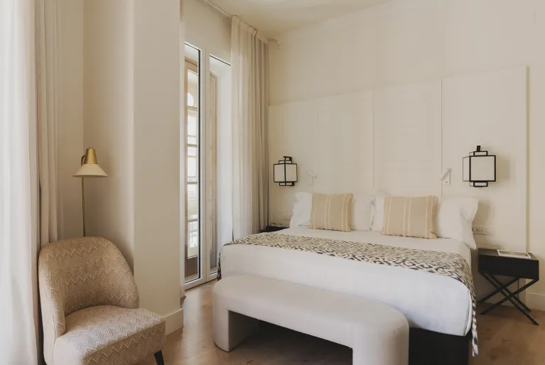 Tutte le nostre camere sono state progettate per accogliervi in un'atmosfera sofisticata, dove i toni neutri sono combinati con sottili tocchi di colore e la luce naturale aumenta la sensazione di armonia. Abbiamo la camera perfetta per il vostro soggiorno, sia che viaggiate in coppia, con la famiglia o con gli amici, grazie alle nostre camere triple e familiari. Se cercate un soggiorno con un tocco di distinzione in più, abbiamo favolose junior suite e suite con viste privilegiate sulla Cattedrale di Malaga.
