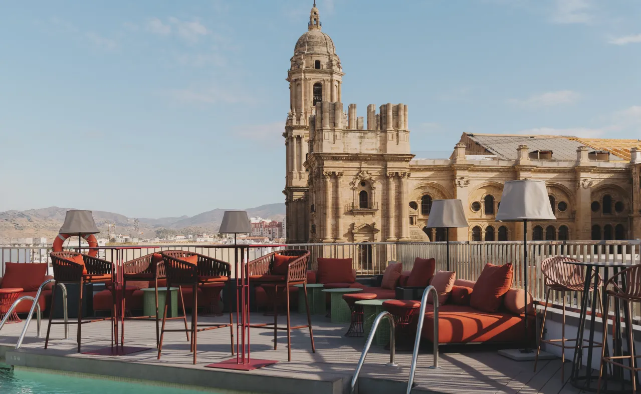 Conoscete la terrazza con le migliori viste sulla cattedrale e sul porto e l'atmosfera più esclusiva di Malaga? Venite sul tetto dell'hotel Catalonia Molina Lario e godetevi le viste panoramiche, la piscina all'aperto, l'area solarium e il servizio bar. Aperto tutto l'anno, è il luogo perfetto per rilassarsi dopo una giornata di visite turistiche, organizzare una serata elegante, ascoltare musica dal vivo e brindare con uno dei nostri cocktail d'autore durante la golden hour, mentre la cattedrale si tinge di riflessi dorati.