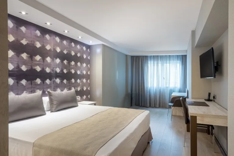 Onder onze kamers raden we u aan om een van de premiumkamers te kiezen, aangezien ze onlangs zijn gerenoveerd met een modern design in blauwe tinten en licht hout met parketvloeren, ze hebben ook een ultramoderne badkamer. Als u een echt uniek verblijf wilt, kies dan voor onze terraskamer met toegang tot de spa, die beschikt over een gemeubileerd terras en gratis toegang tot de wellnessruimte van hotel Catalonia Atenas.