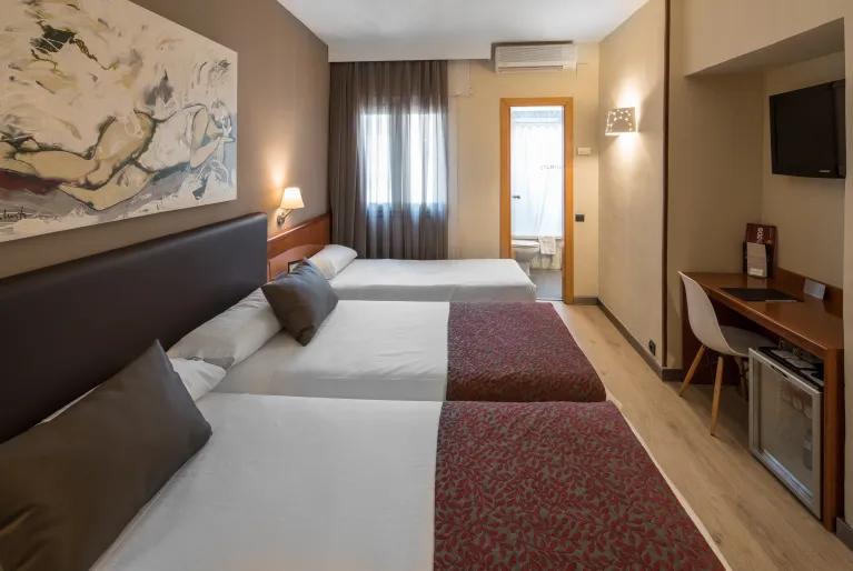 Elk van de hotelkamers is perfect voor uw verblijf in de stad, of u nu voor toerisme of zaken komt. Als u uw eigen buitenruimte wilt hebben om te ontspannen, kies dan voor een van onze tweepersoonskamers met balkon of een van de premium terrassen, waar u kunt genieten van een prachtig privéterras met tuinmeubilair. Als u met vrienden of kinderen komt, wachten de driepersoonskamers en familiekamers op u, voorzien van alle comfort.