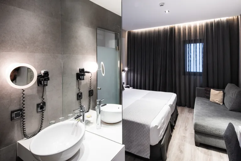 Onze kamers zijn niet alleen gepersonaliseerd met afbeeldingen van verschillende steden en landen, maar zijn ook perfect voor toeristische of zakelijke verblijven. Kies de tweepersoonskamer met uitzicht op de Gran Via als u een kijkje wilt nemen in de drukte van de stad, de superior terraskamer om een ​​privéterras te hebben met Barcelona aan uw voeten en onze exclusieve suite met privézwembad om te baden of bruinen zonder de kamer moeten verlaten.