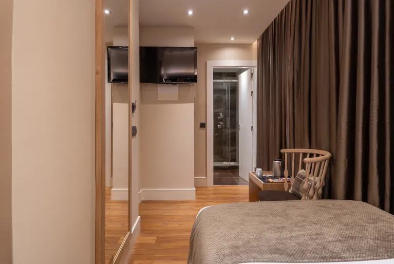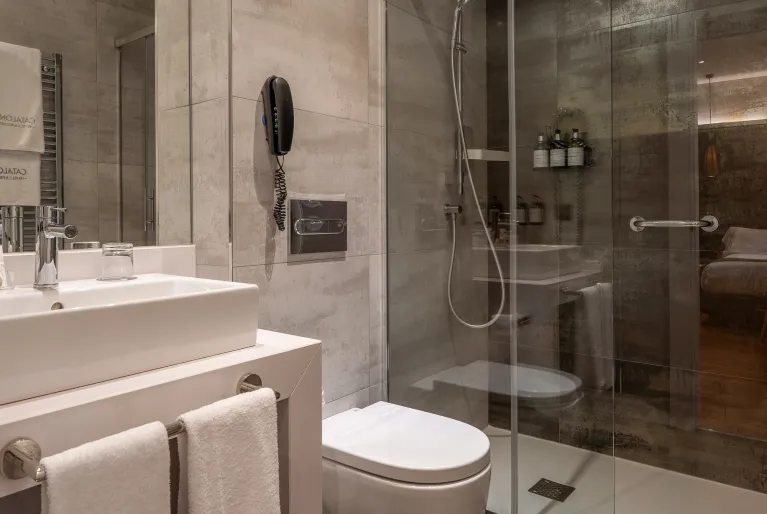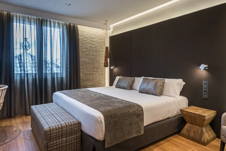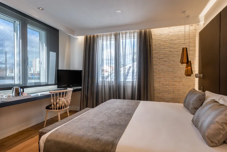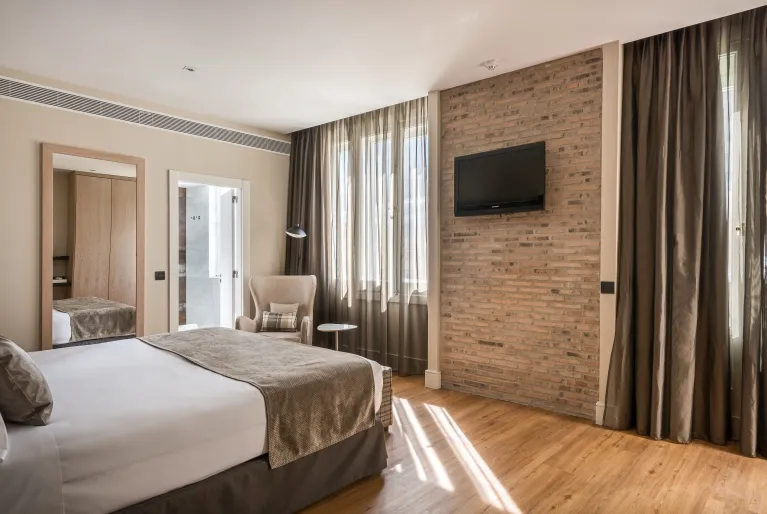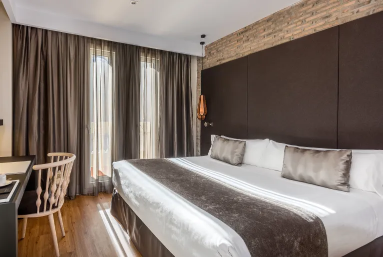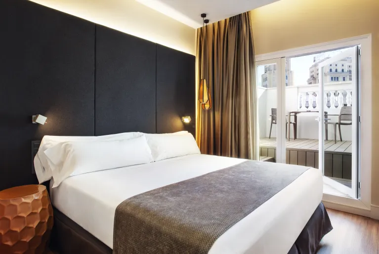 Kies uit de meer dan 180 kamers van hotel Catalonia Gran Vía Madrid, allemaal gerenoveerd en warm ingericht in hout- en beigetinten die u uitnodigen om te ontspannen en tot rust te komen. Sommige vallen op door hun terrassen met uitzicht op de Gran Vía, andere door hun eigen buitenjacuzzi. Een speciale vermelding verdient onze spectaculaire terrassuite met jacuzzi, die beschikt over een aparte woon- en slaapkamer en een luxe uitzicht over de stad.