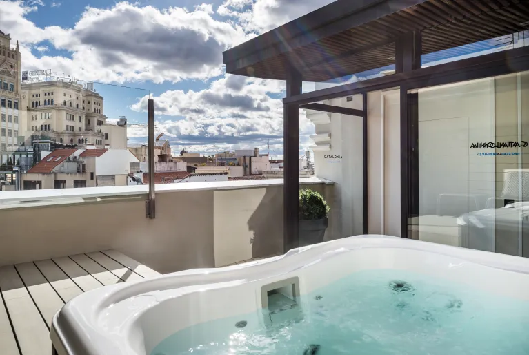 Neem een ​​bad met de Gran Vía aan uw voeten in het buitenzwembad op ons dakterras, werk aan uw conditie in de fitnessruimte (gratis voor alle hotelgasten) of trakteer jezelf op een moment van ontspanning met een massage in je kamer..