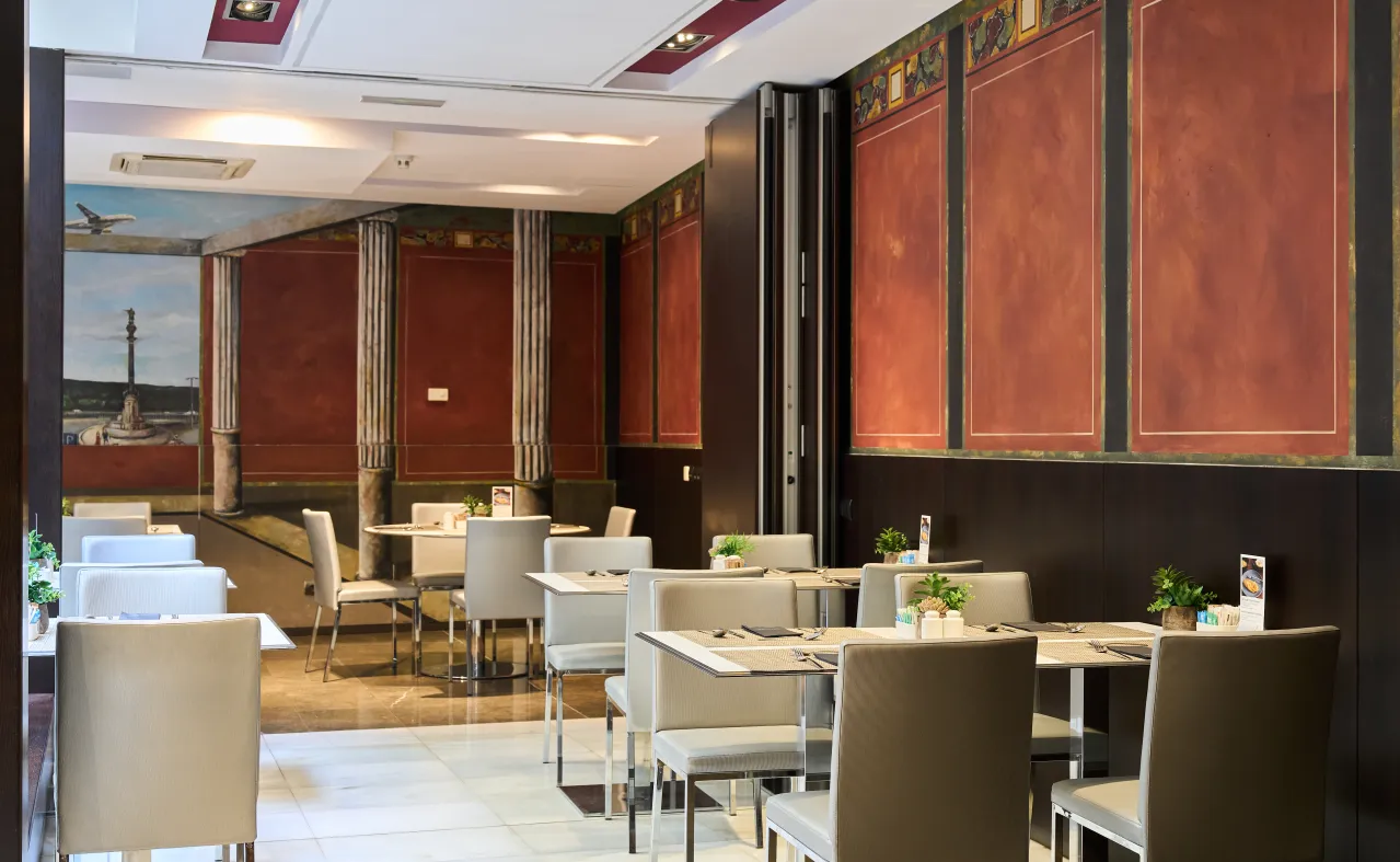 Elke ochtend wacht ons ontbijtbuffet op u in een zeer lichte kamer met een boom in de lichtbron en een prachtige muurschildering van Barcelona's Port Vell op de achterwand. Doe nieuwe energie op met onze verscheidenheid aan warme gerechten, kazen, vleeswaren en mis de beroemde aardappelomelet met tomatenbrood niet. We hebben ook vers geperst natuursap, verschillende groentedranken, opties voor diabetici en coeliakiepatiënten.
