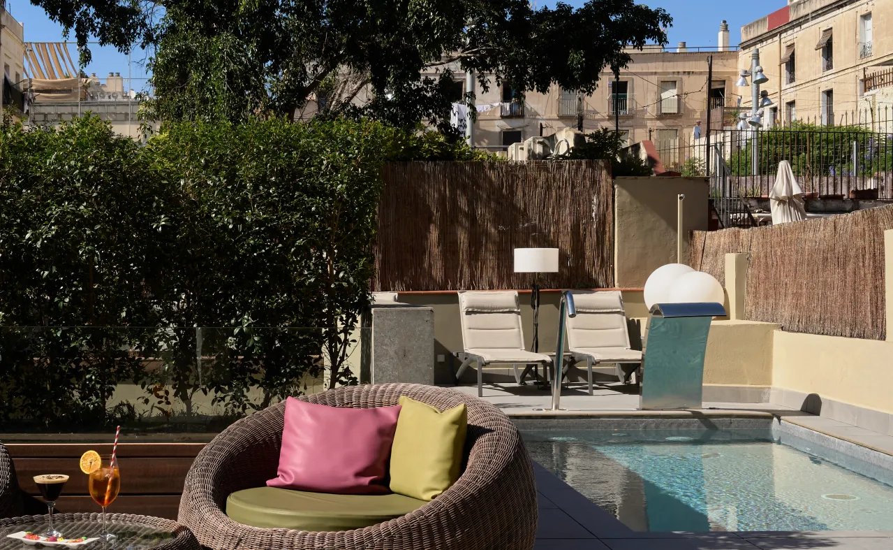 Onder de elegant ingerichte kamers zijn er enkele die stenen bogen hebben behouden, die we hebben gerestaureerd zodat u ervan kunt genieten. Als u een exclusief verblijf wilt, kies dan voor onze fantastische junior suite kamer, waar u kunt genieten van een groot terras met een panoramisch uitzicht op het maritieme gebied van Barcelona, evenals een stedelijk zwembad om aan de hitte te ontsnappen en tuinmeubilair om te ontspannen.