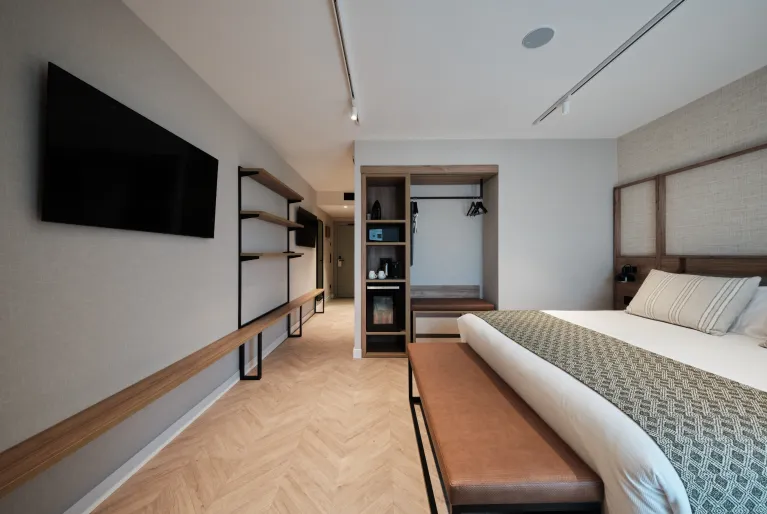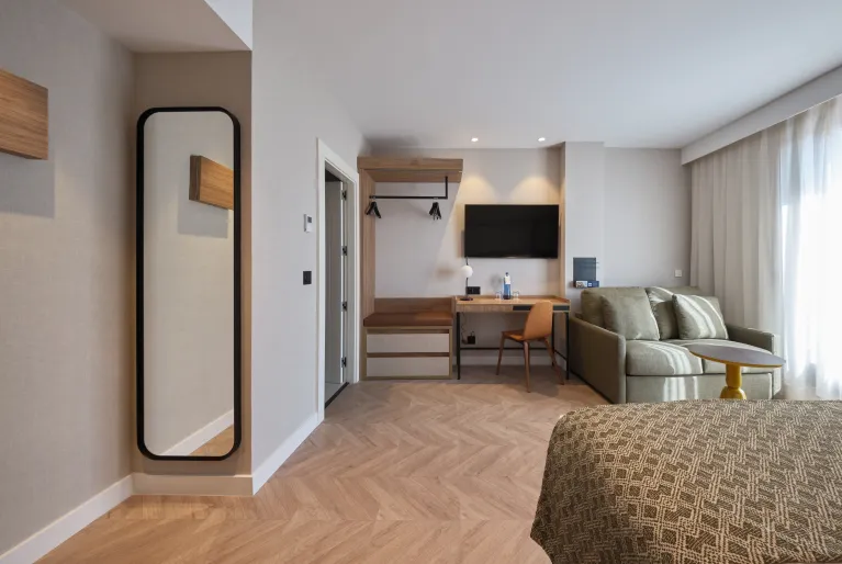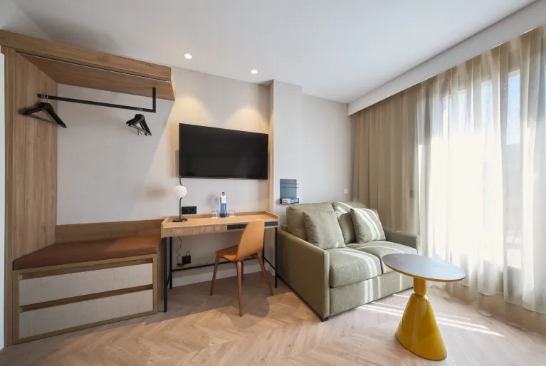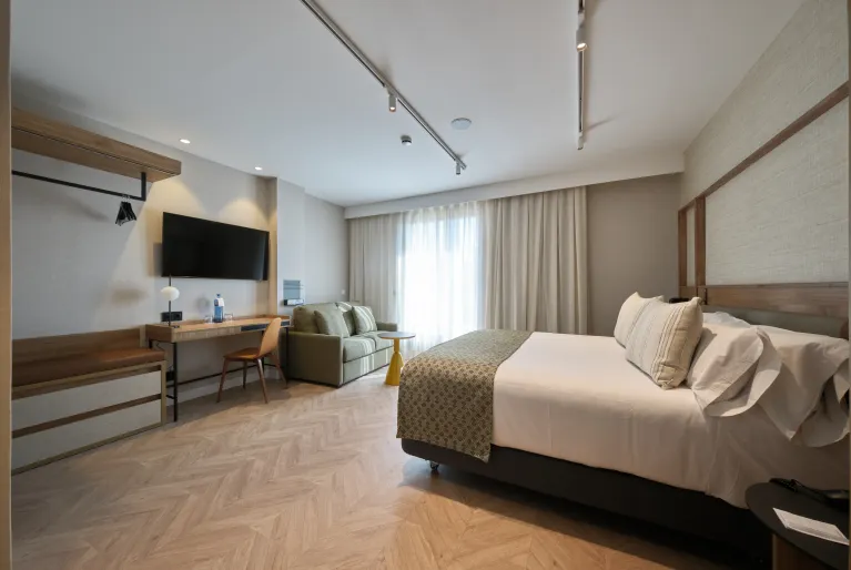 Als u tijdens uw verblijf in Barcelona de nieuwe aflevering van uw favoriete serie niet wilt missen, zult u blij zijn te weten dat alle kamers van hotel Catalonia Sagrada Familia zijn uitgerust met een televisie met Chromecast. Daarnaast zijn de premium en superior kamers geüpdatet met een strak en modern design in beige en grijstinten. Maar als u echt wilt verblijven met maximaal comfort, reserveer dan een van onze fantastische junior suites en u heeft een kamer met een aparte woonkamer en een kingsize bed.