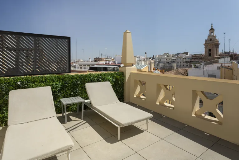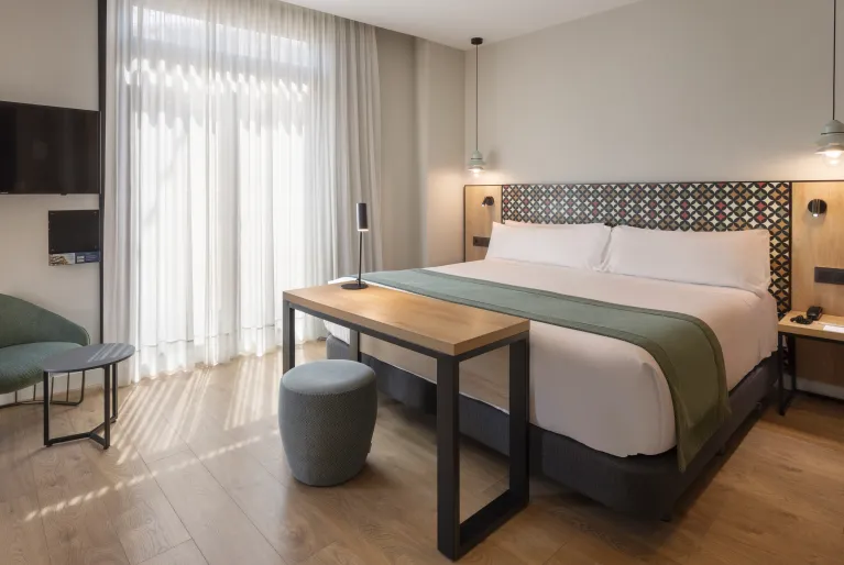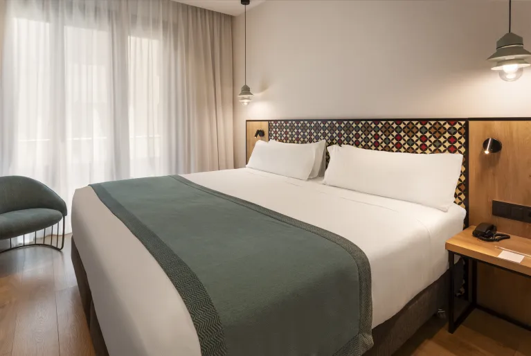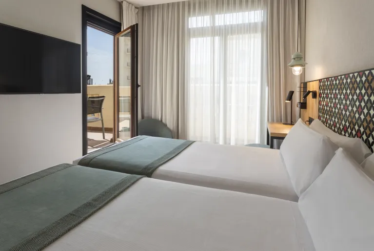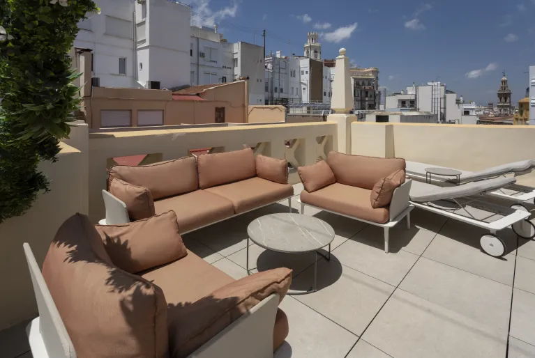 Os premium, superiores e suites foram renovados com um design moderno de linhas simples com acabamentos em madeira clara e casa de banho com mosaico colorido na parede. Escolha um dos nossos quartos com terraço para desfrutar das vistas sobre o centro histĂłrico de ValĂȘncia e refresque-se num dos dois quartos com piscina privada, o superior terraço & piscina ou a suite jĂșnior terraço & piscina.
