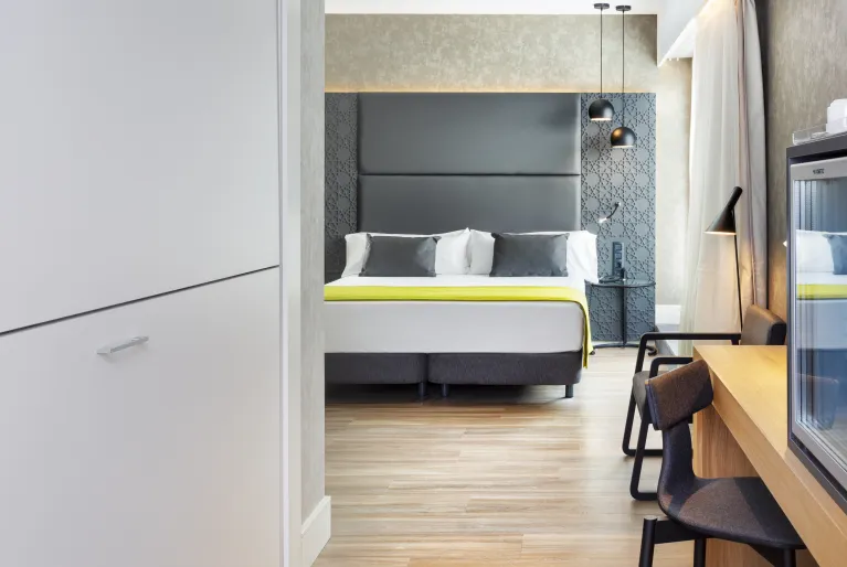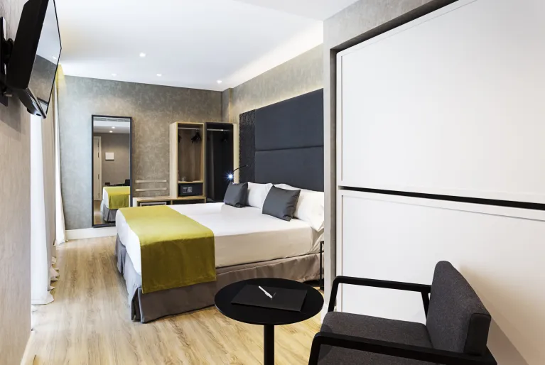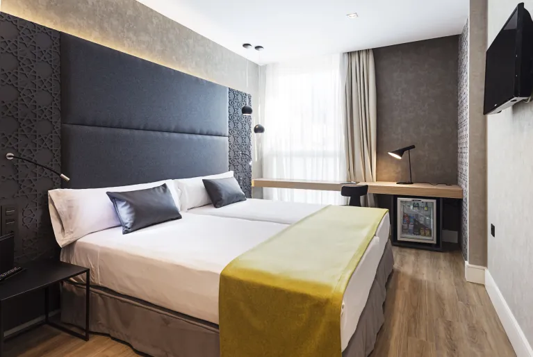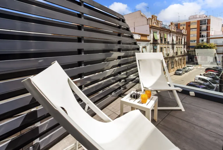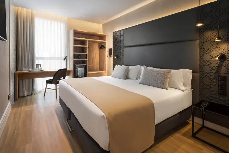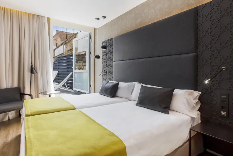 Se não quer perder nada durante a sua visita a Sevilha, nada melhor do que um quarto com vista para a cidade. Pode escolher entre várias opções, incluindo o quarto premium com terraço e vista para a Giralda ou o espetacular quarto superior com terraço, muito espaçoso e com um design muito moderno. Todos os quartos do hotel Catalonia Giralda são exteriores e contam com banheiro completo, além de Wi-Fi gratuito que você pode desfrutar em todas as nossas instalações.