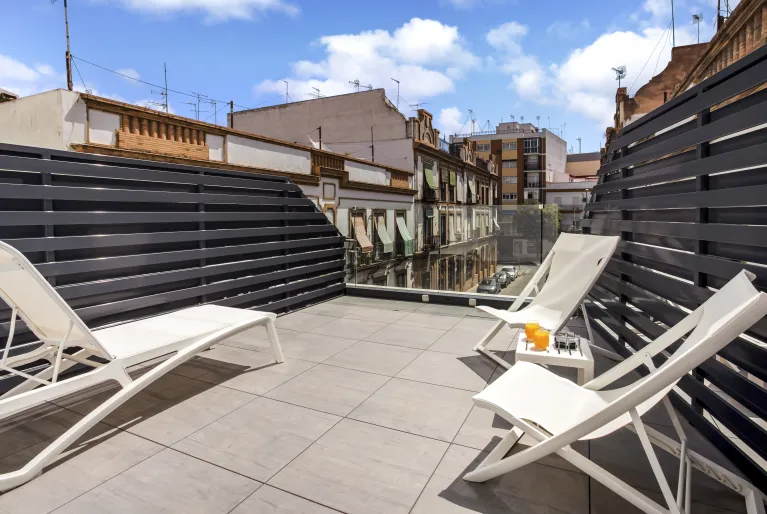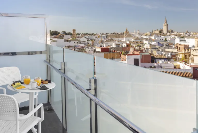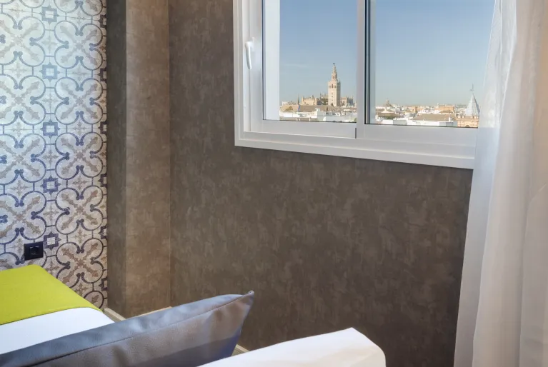Ficará alojado no centro histórico e comercial da cidade, junto ao bairro de Santa Cruz e perto do famoso campanário da catedral que dá nome ao nosso hotel, a Giralda. Classificada como Património da Humanidade pela UNESCO, a torre conjuga uma parte inferior de estilo moçárabe, uma vez que foi originalmente o minarete da antiga mesquita, com uma parte superior do século XVI, construída na época cristã para albergar os sinos. .