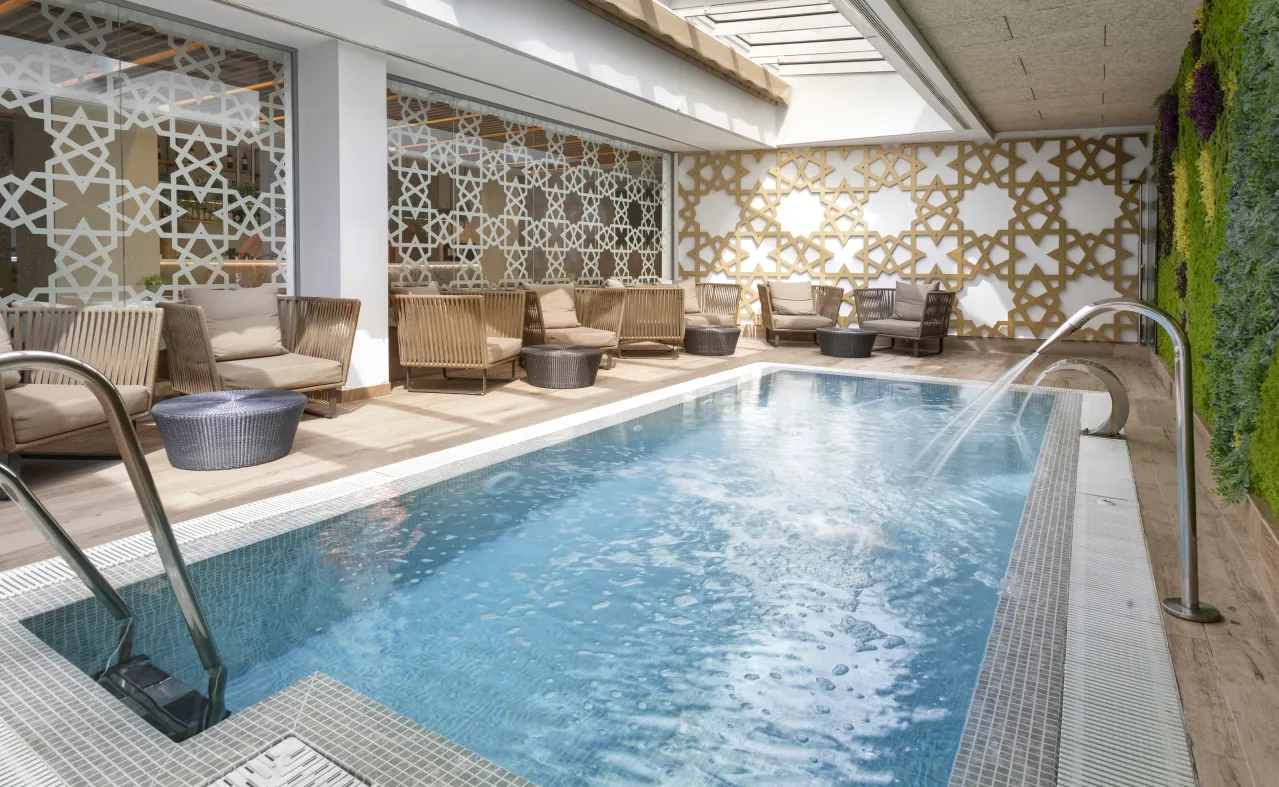 Ao chegar ao hotel, você ficará surpreso com o incrível lobby onde encontrará uma piscina coberta com um espetacular jardim vertical ao fundo. Refresque-se nas suas águas aquecidas e desfrute da cascata de pressão, dos jactos de água e da zona de natação em contra-corrente. Integrado à área da piscina está o nosso Gastrobar, um espaço aberto e aconchegante com acabamento em madeira onde você pode tomar um coquetel sempre que quiser. À noite, não perca os pratos andaluzes como flamenquines, salmorejo ou caldo sevilhano com hortelã, além de outras opções de cozinha internacional.