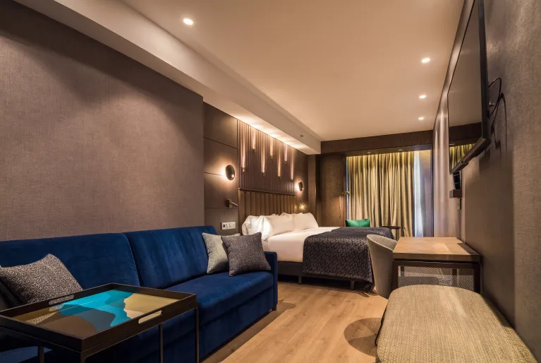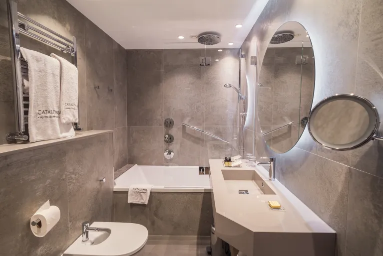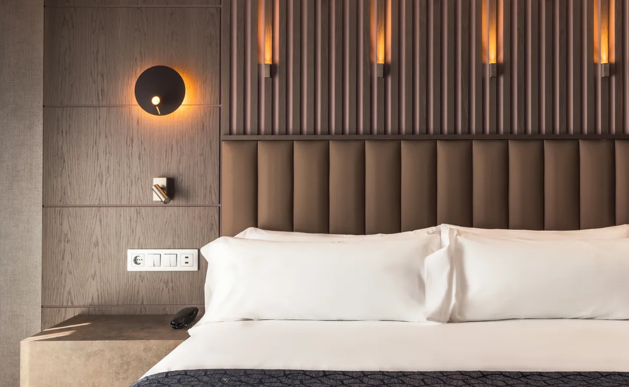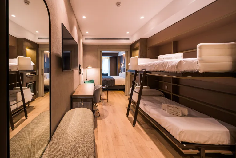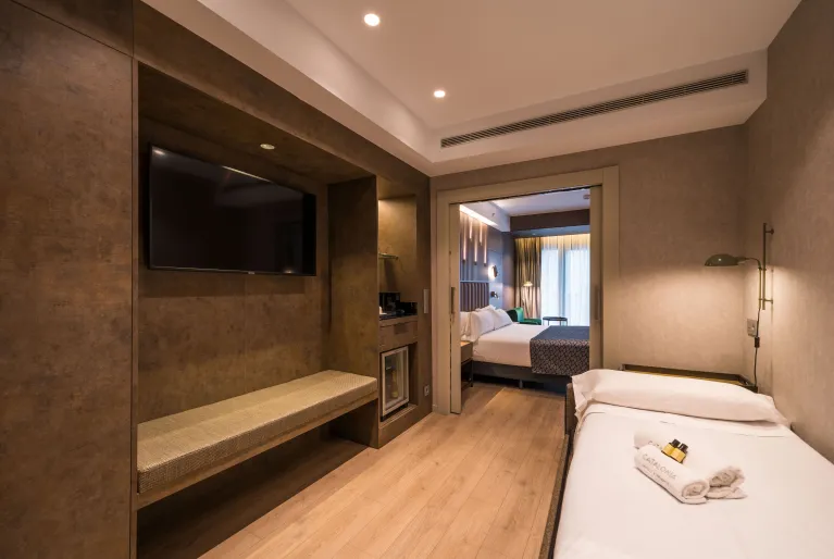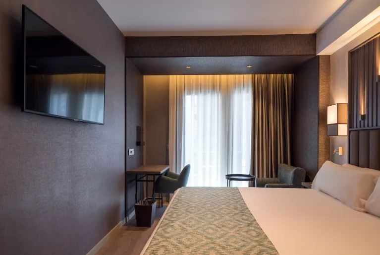 Escolha o hotel Catalonia Gran Vía Bilbao, inaugurado em 2021, que o(a) surpreenderá pelo seu design atual com reminiscências do passado industrial da cidade. Prove os acepipes bascos, os chamados pintxos, do nosso Gastrobar, banhe-se na piscina do rooftop, trabalhe ou repouse no pátio interior ajardinado e relaxe no nosso spa completo. Se vier de carro, dispomos de estacionamento com carregadores para veículos elétricos e as nossas salas de eventos são ideais para a sua próxima celebração. Estamos à sua espera!