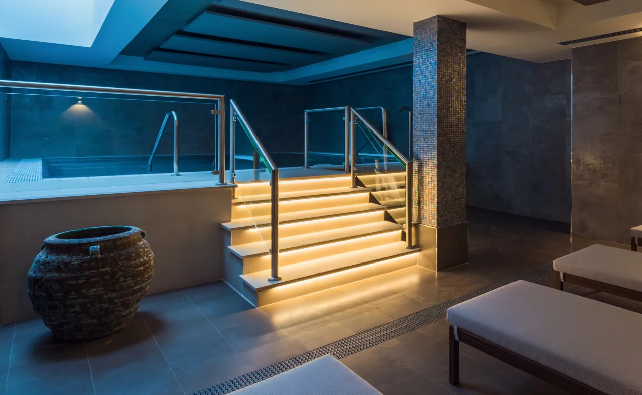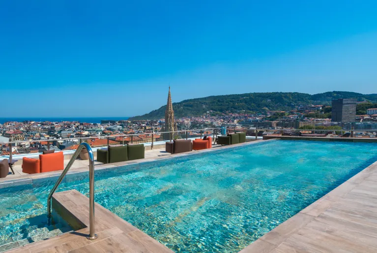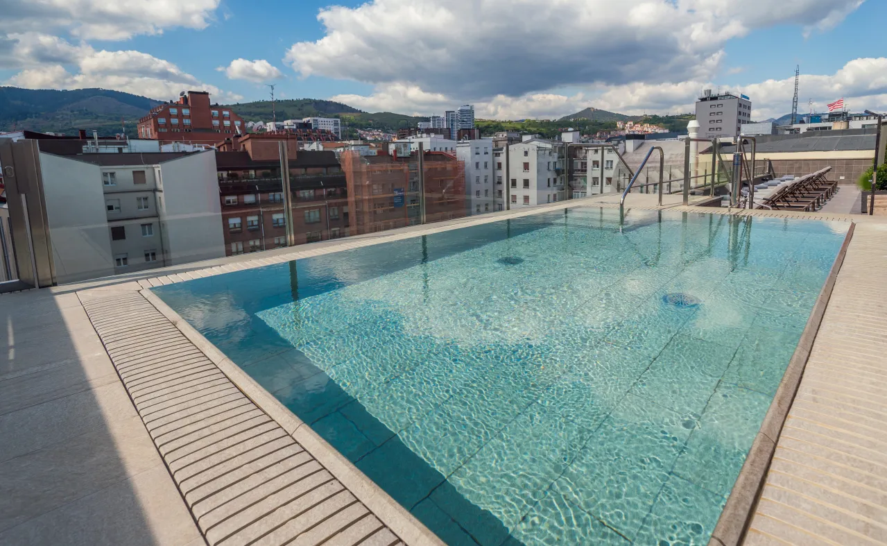 Suba à cobertura e descubra um refúgio de paz com uma piscina urbana de água salgada e uma zona de solário com espreguiçadeiras para aproveitar o verão na cidade. Se necessita de relaxar completamente, o nosso spa espera por si com uma piscina com jactos, banho turco, duche de sensações e cabines de massagens onde poderá escolher o ritual ou tratamento corporal que preferir. Não abandone sua rotina esportiva durante a sua estadia e venha treinar em nossa sala de fitness, aberta 24 horas por dia e com máquinas de última geração, algumas delas com acesso a Netflix e Spotify.