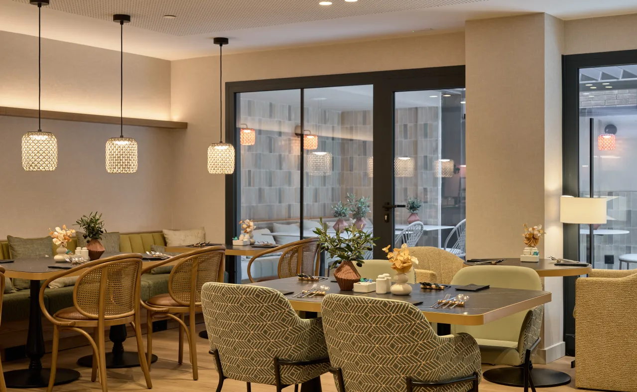Traremos o que você preferir do cardápio do nosso Gastrobar, com coquetéis, sucos, refrigerantes, cerveja, vinho ou café. Pode ainda saborear saborosos pratos da cozinha mediterrânica e internacional na esplanada interior do Gastrobar, ideal para uma pausa de manhã ou à tarde. Não sem antes ter começado o dia a carregar as energias ao máximo no nosso buffet de pequeno-almoço, onde nunca faltam omelete de batata e pão com tomate. Se for mais guloso, pode também escolher entre compotas, pastelaria fresca, cereais e muito mais.